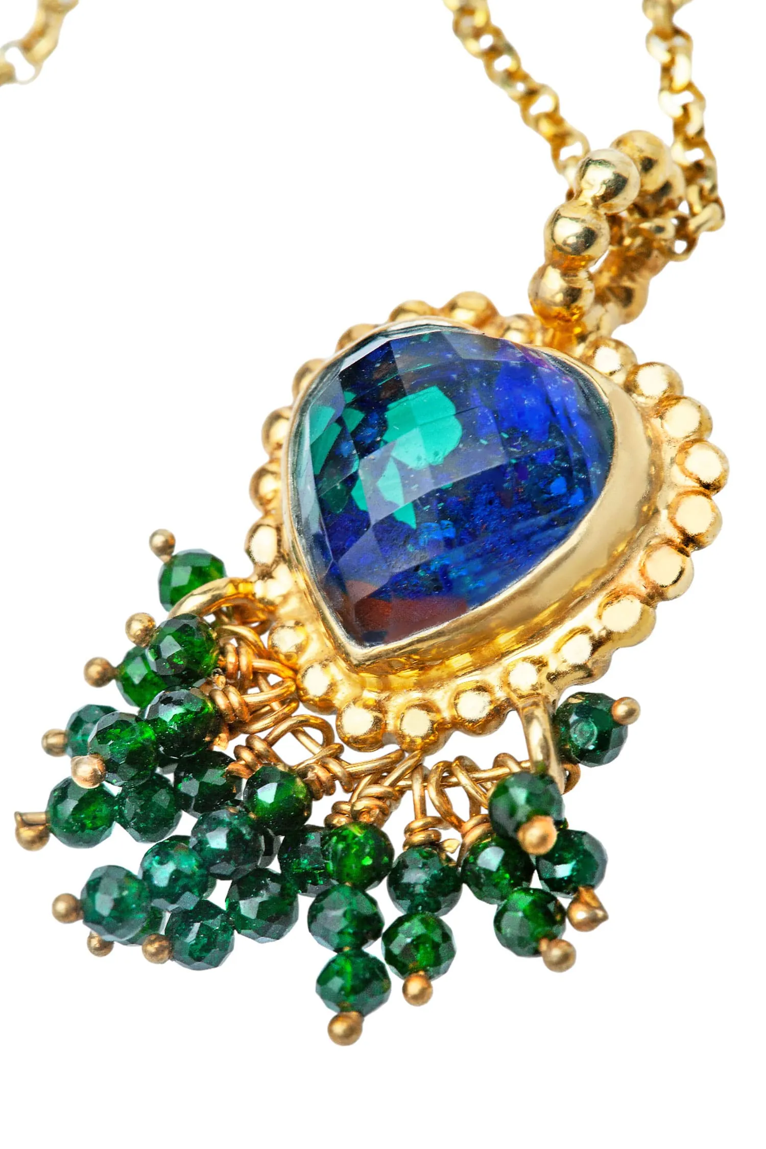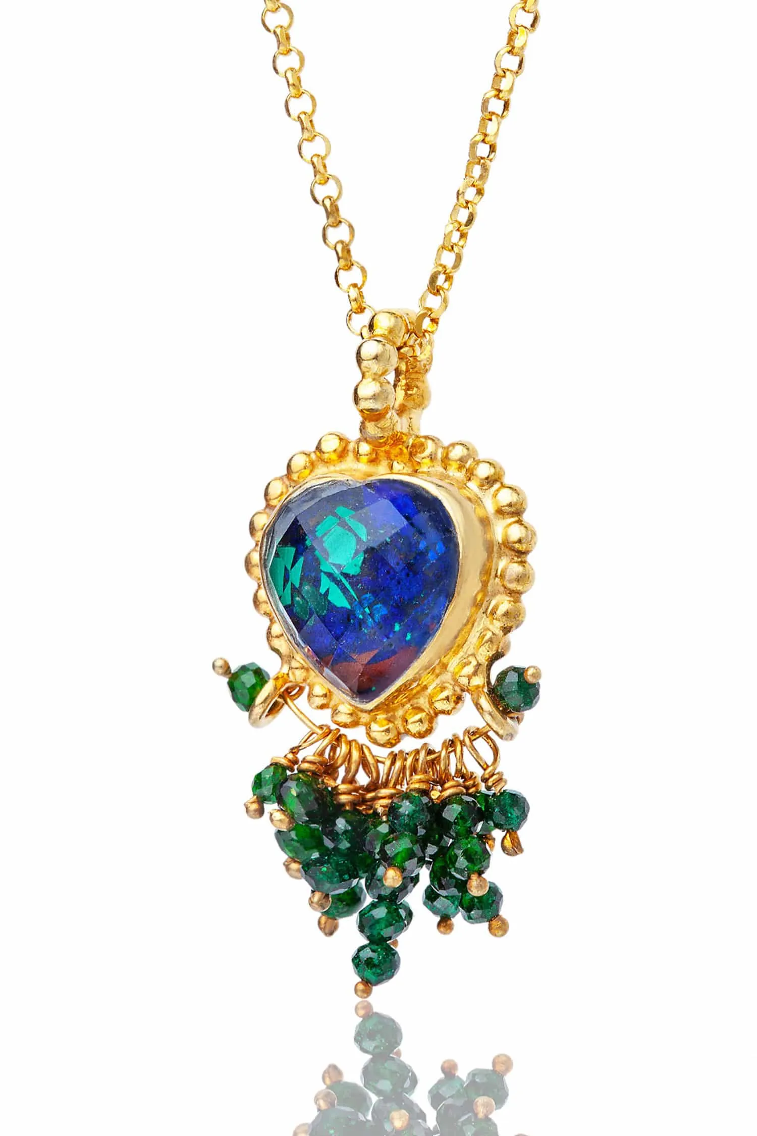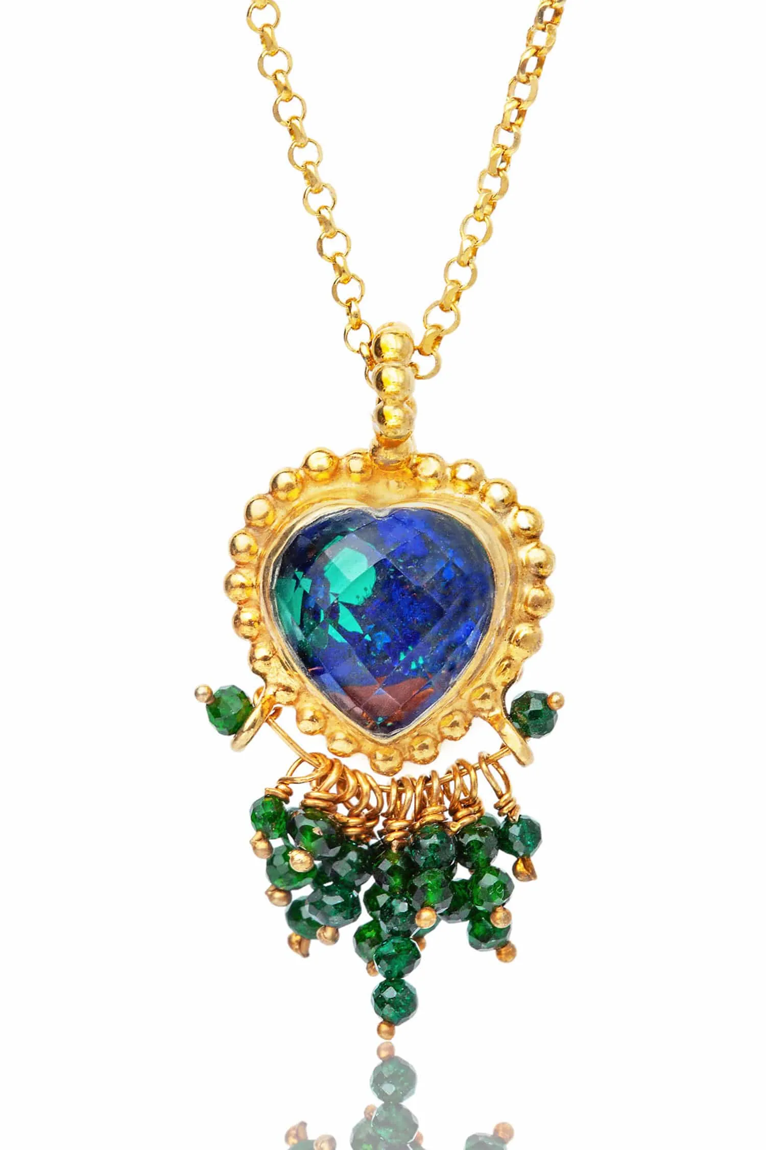 Azurite & Malachite heart gold plated silver necklace