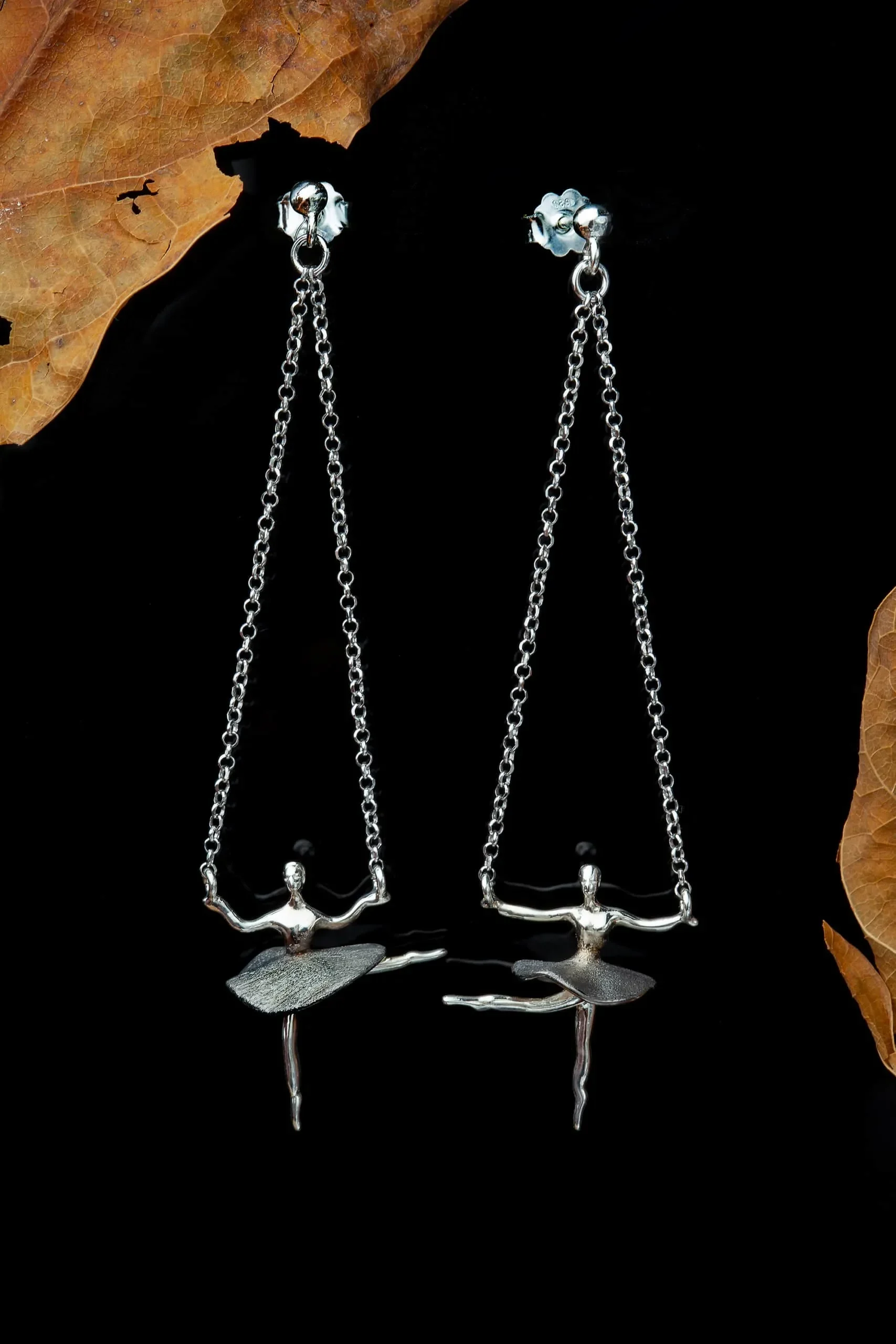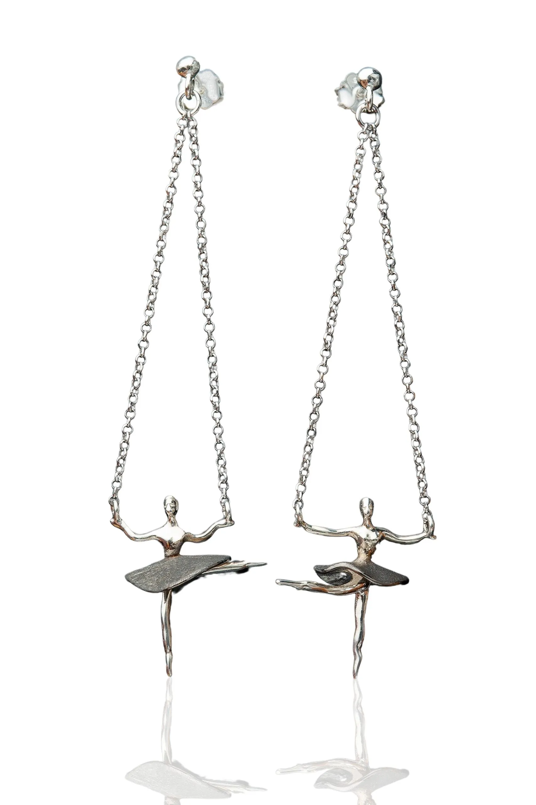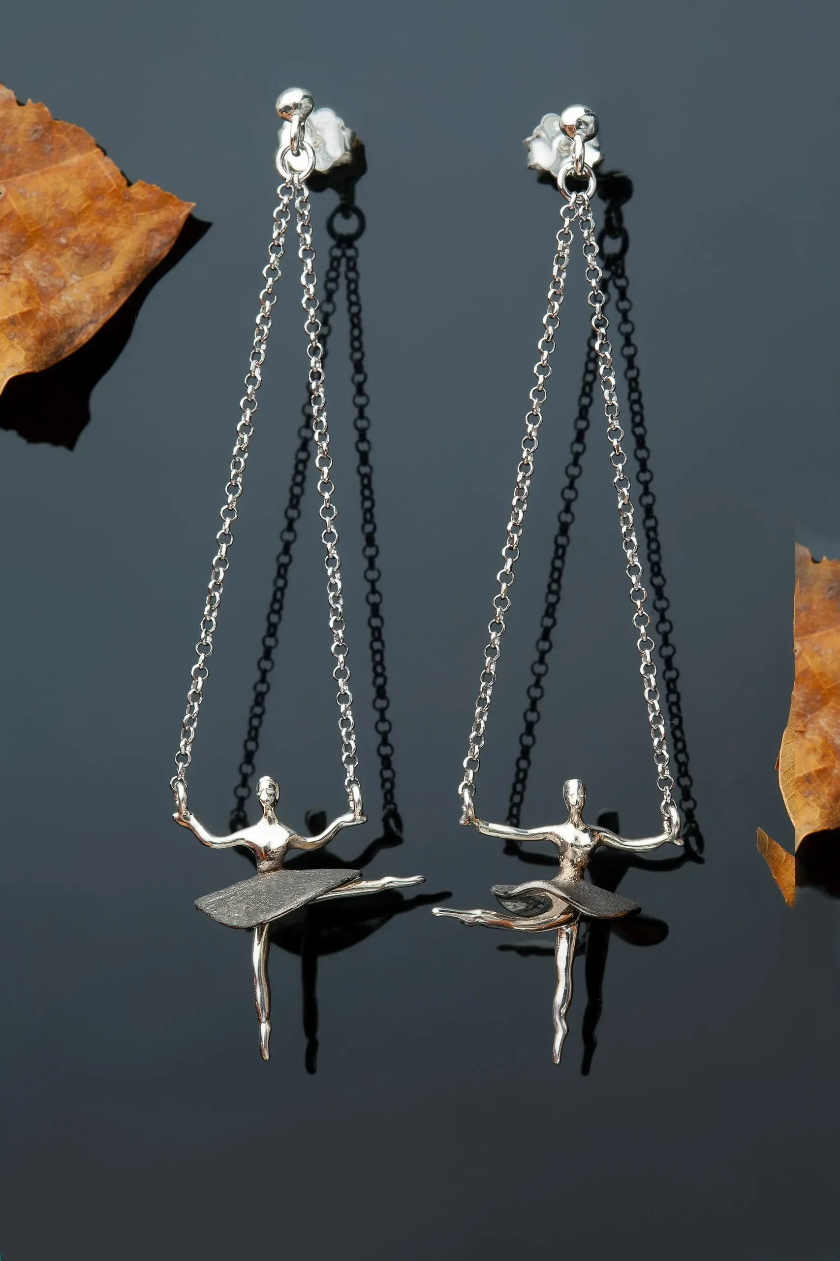 Ballet dancers rhodium plated silver earrings with black rhodium plated details