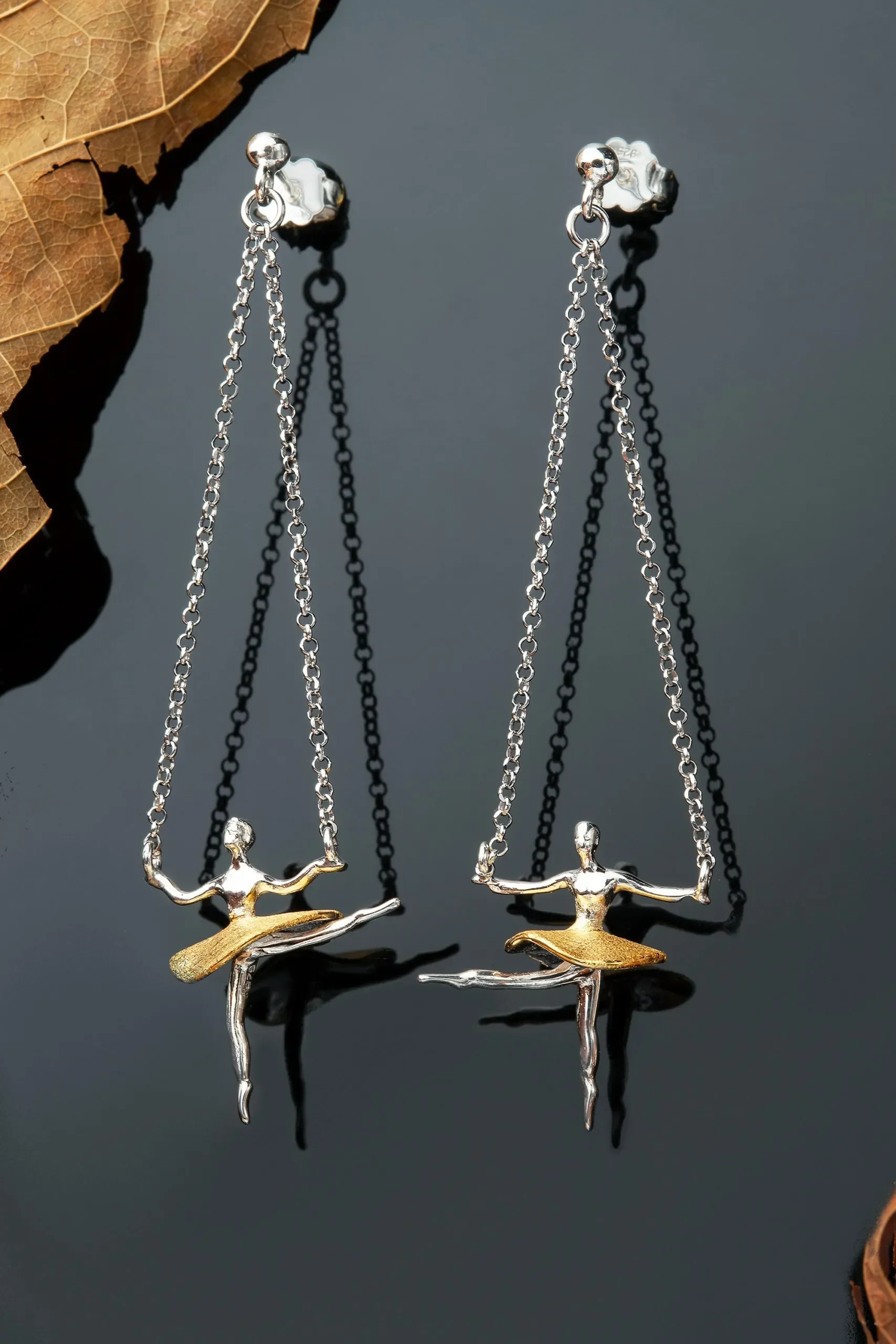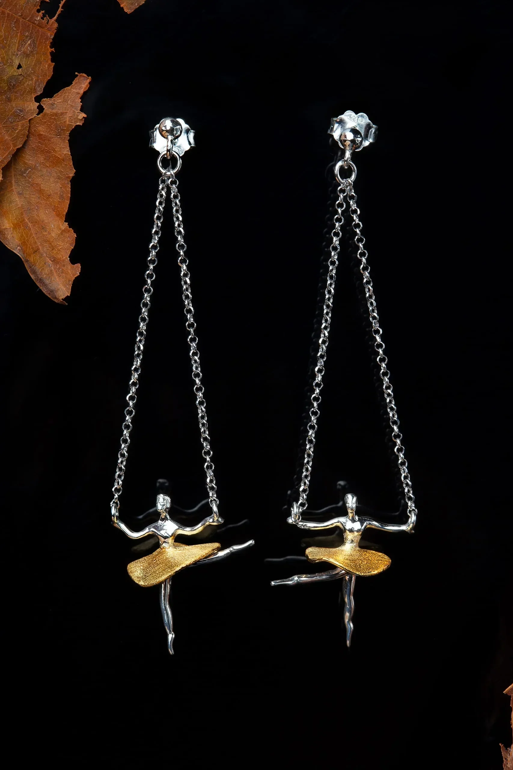 Ballet dancers gold and rhodium plated silver earrings