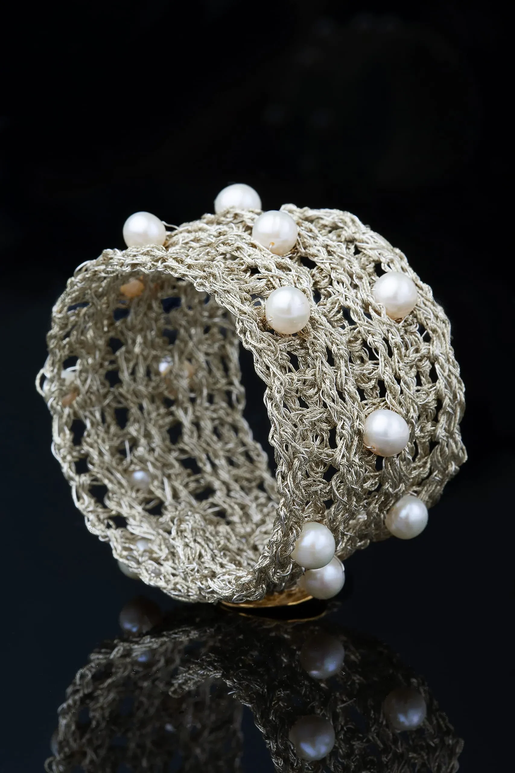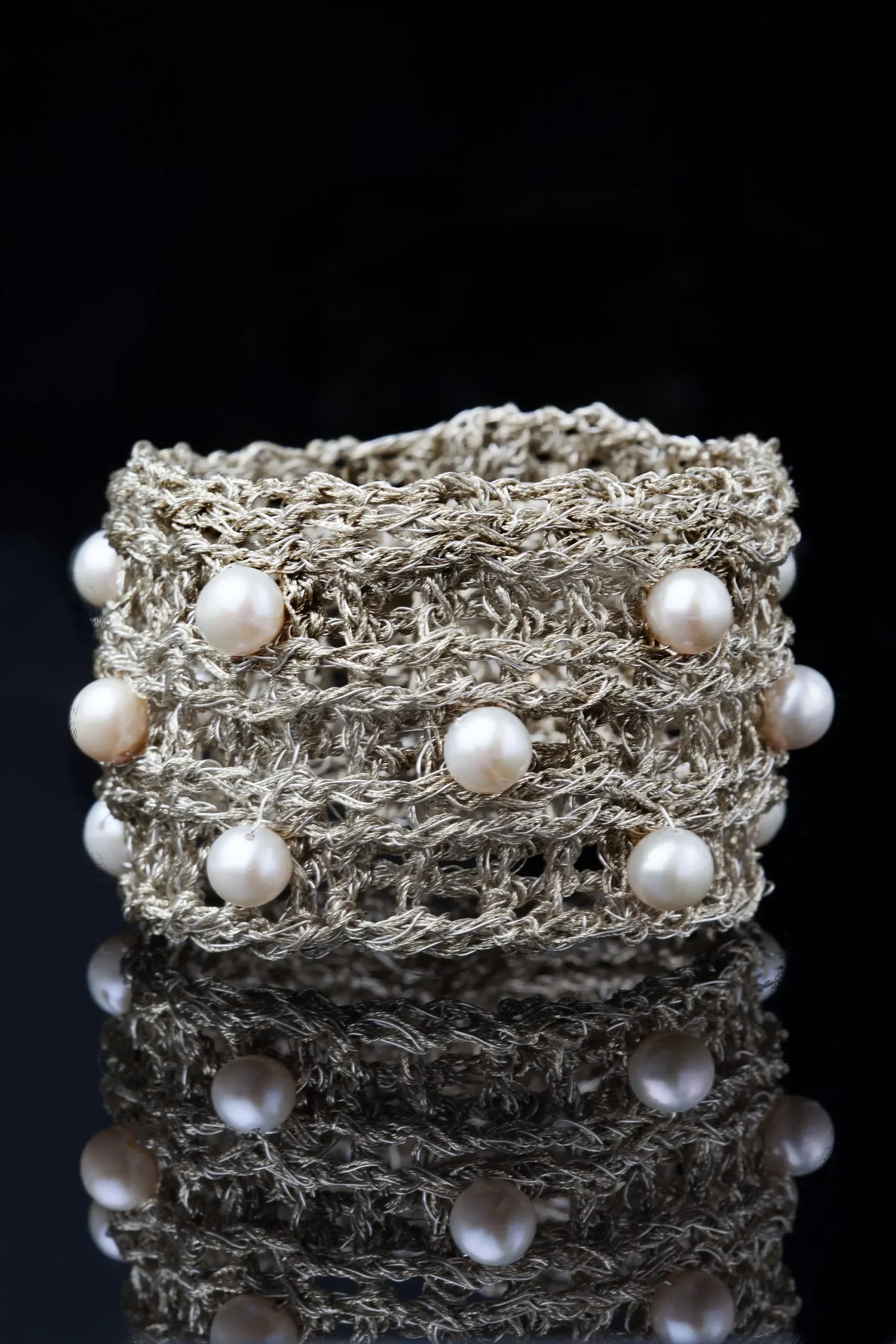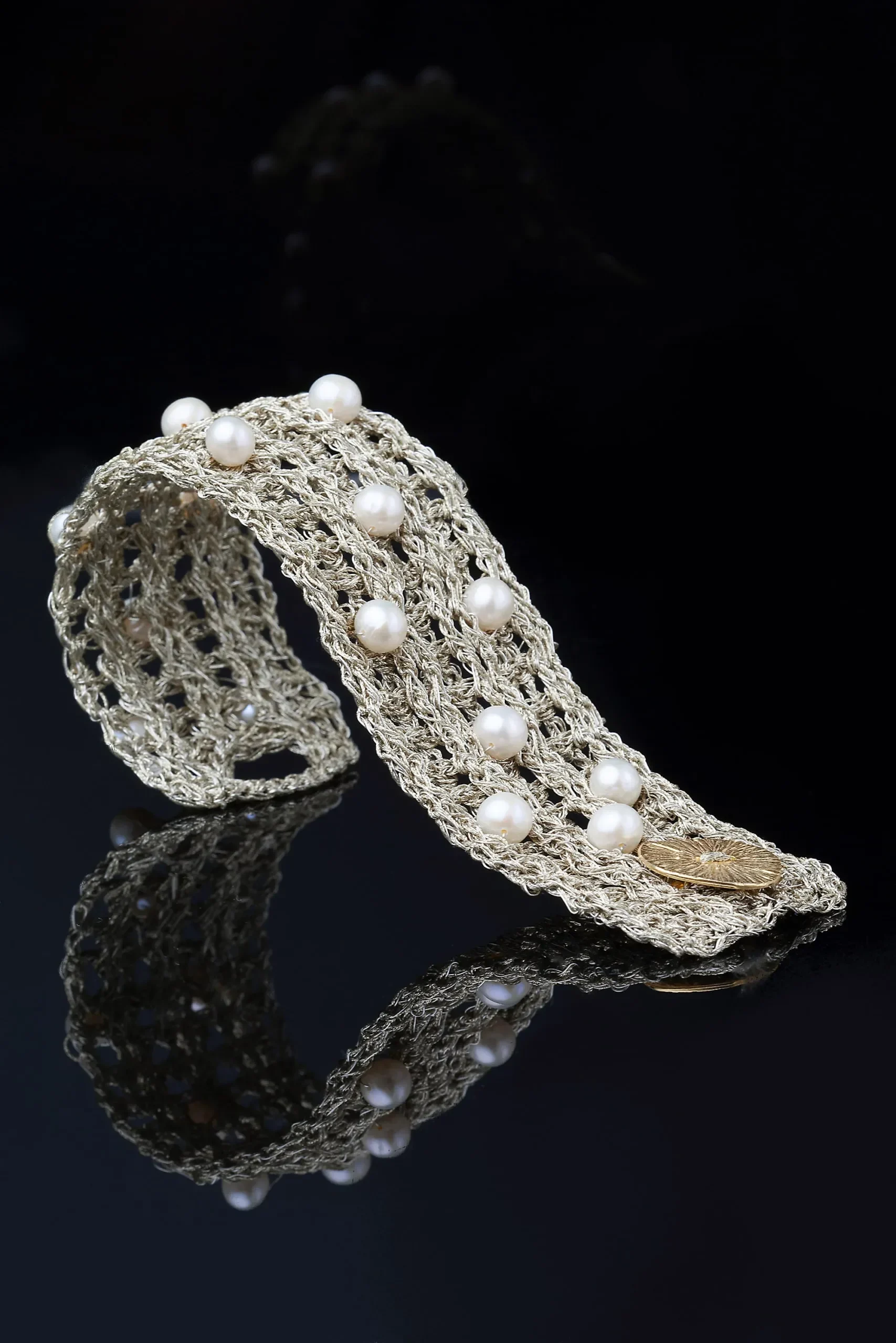 Introducing our beautiful Crochet Knit Silver Bracelet with Pearls! This elegant accessory is the perfect blend of modern and classic, adding a touch of sophistication to any outfit. Handcrafted with love, each bracelet features delicate silver crochet detailing and lustrous pearls, creating a unique and eye-catching design. Whether you’re dressing up for a special occasion or adding a touch of elegance to your everyday look, this bracelet is sure to turn heads. The adjustable clasp ensures a comfortable fit for all wrist sizes. Elevate your style with our Crochet Knit Silver Bracelet with Pearls.