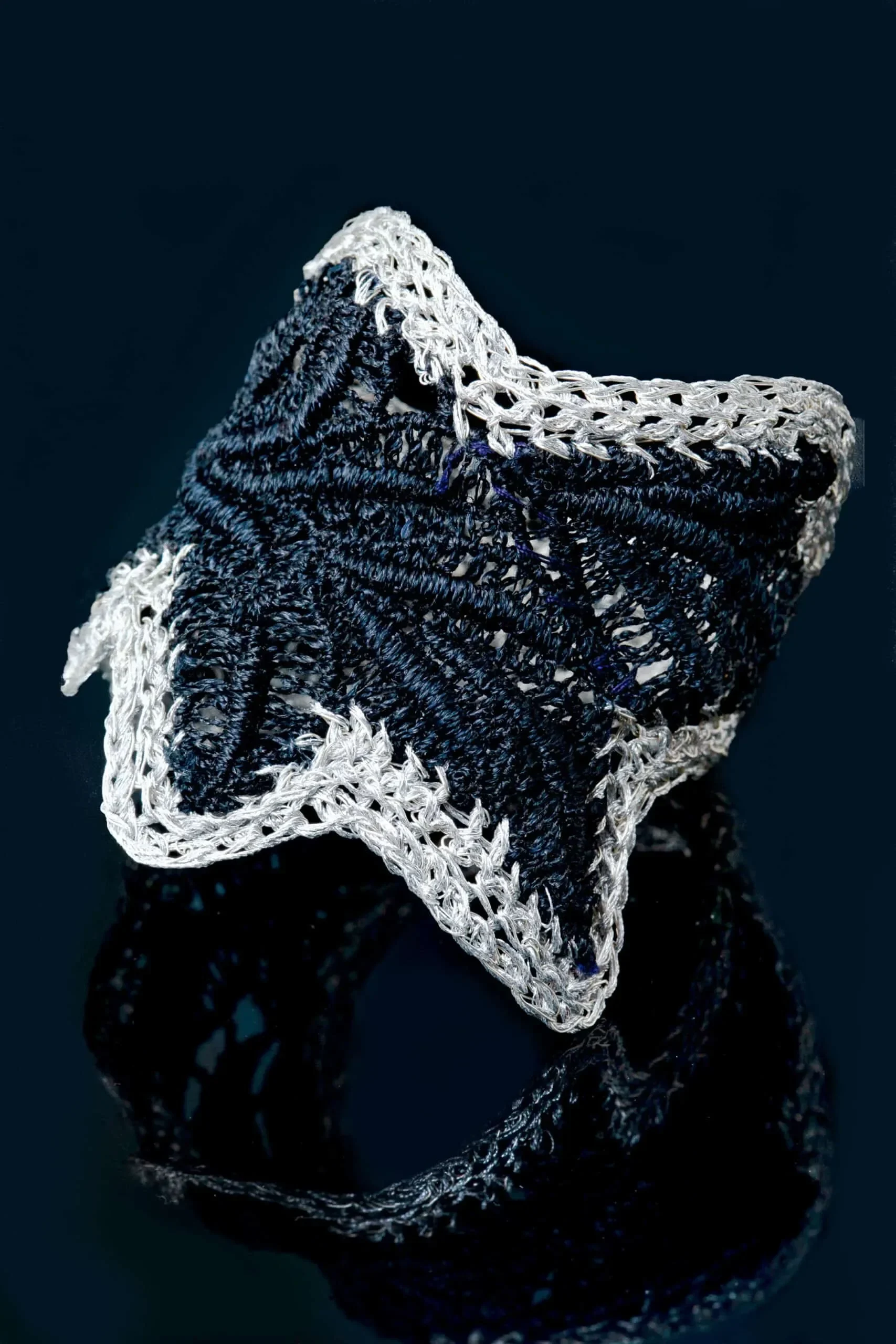 Pleiades collection showcases handmade jewelry that uniquely combines crochet knit techniques with bold, statement designs. Each piece stands out as a distinctive work of fashion jewelry, offering a blend of intricate craftsmanship and creative flair. This collection is perfect for those seeking one-of-a-kind jewelry that makes a striking impact.