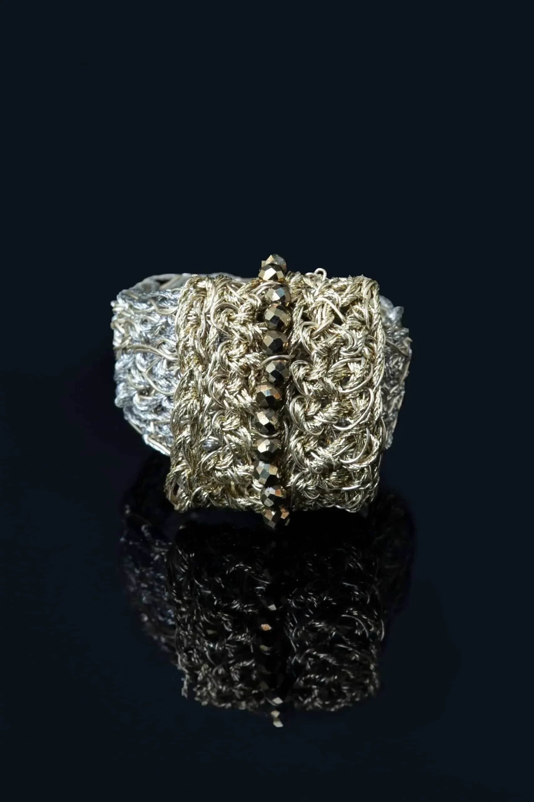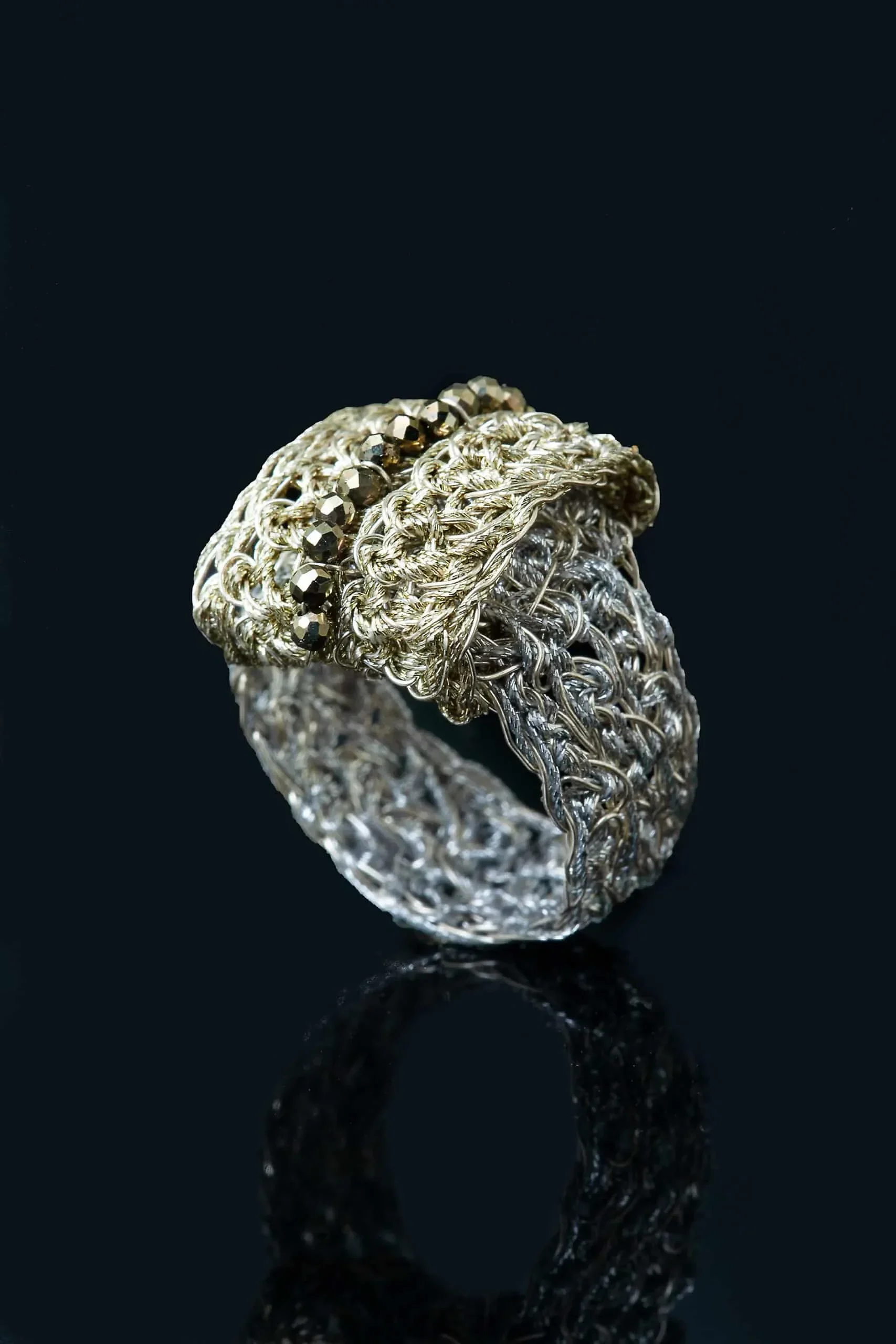 Introducing our stunning Crochet Knit Silver Ring with Pyrite – a one-of-a-kind piece that will add a touch of elegance and natural beauty to any outfit. Handcrafted with intricate crochet detailing and featuring a striking pyrite stone, this ring is a must-have for any jewellery lover. Made with high-quality silver, this ring is not only beautiful but also durable. Perfect for dressing up or down, this versatile piece will make a statement wherever you go. Elevate your style with our Crochet Knit Silver Ring with Pyrite. Shop now and add a touch of earthy charm to your accessories’ collection!