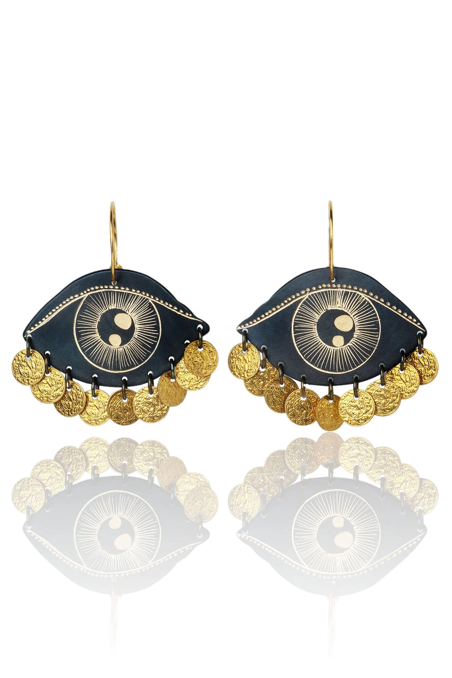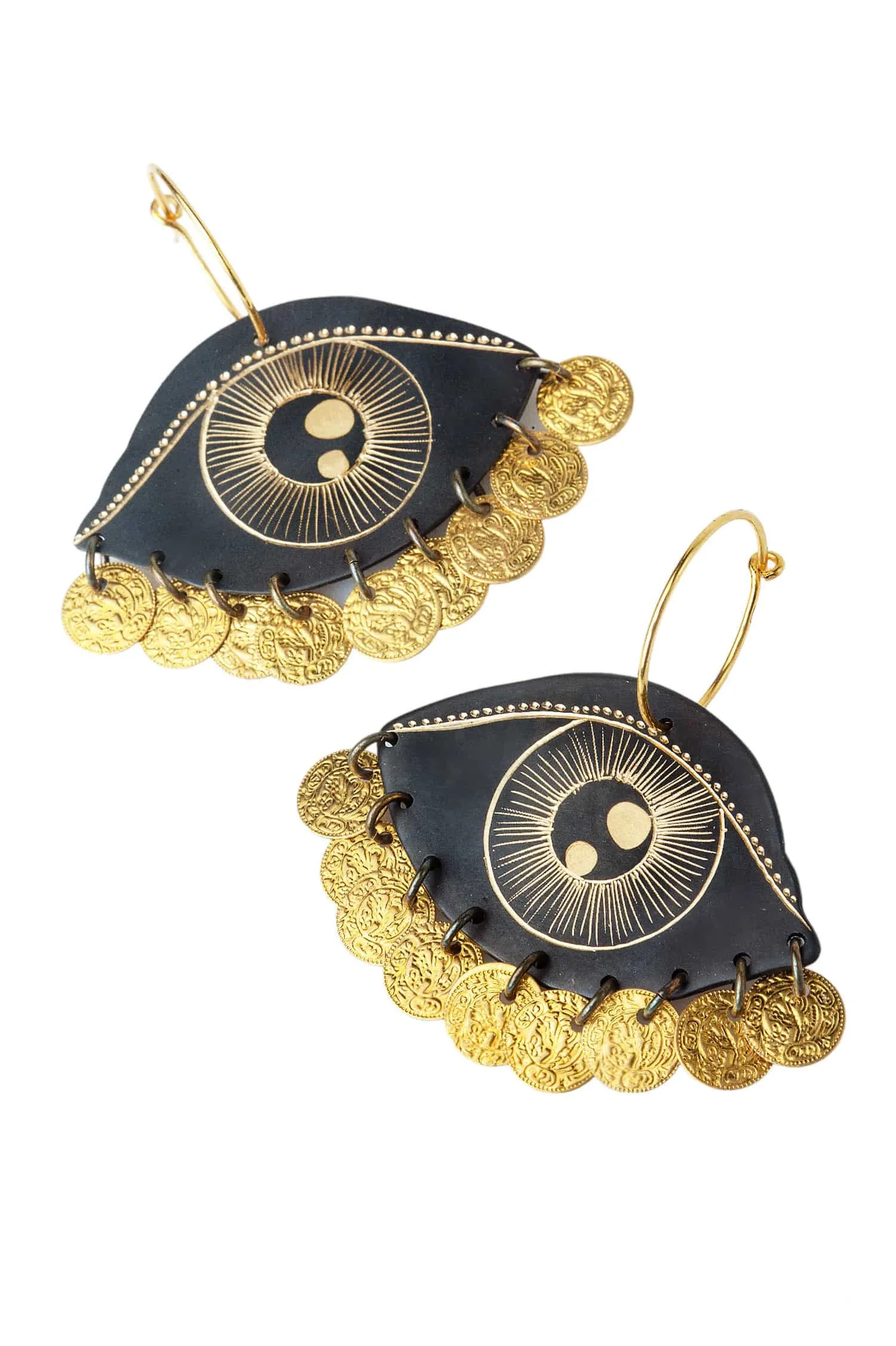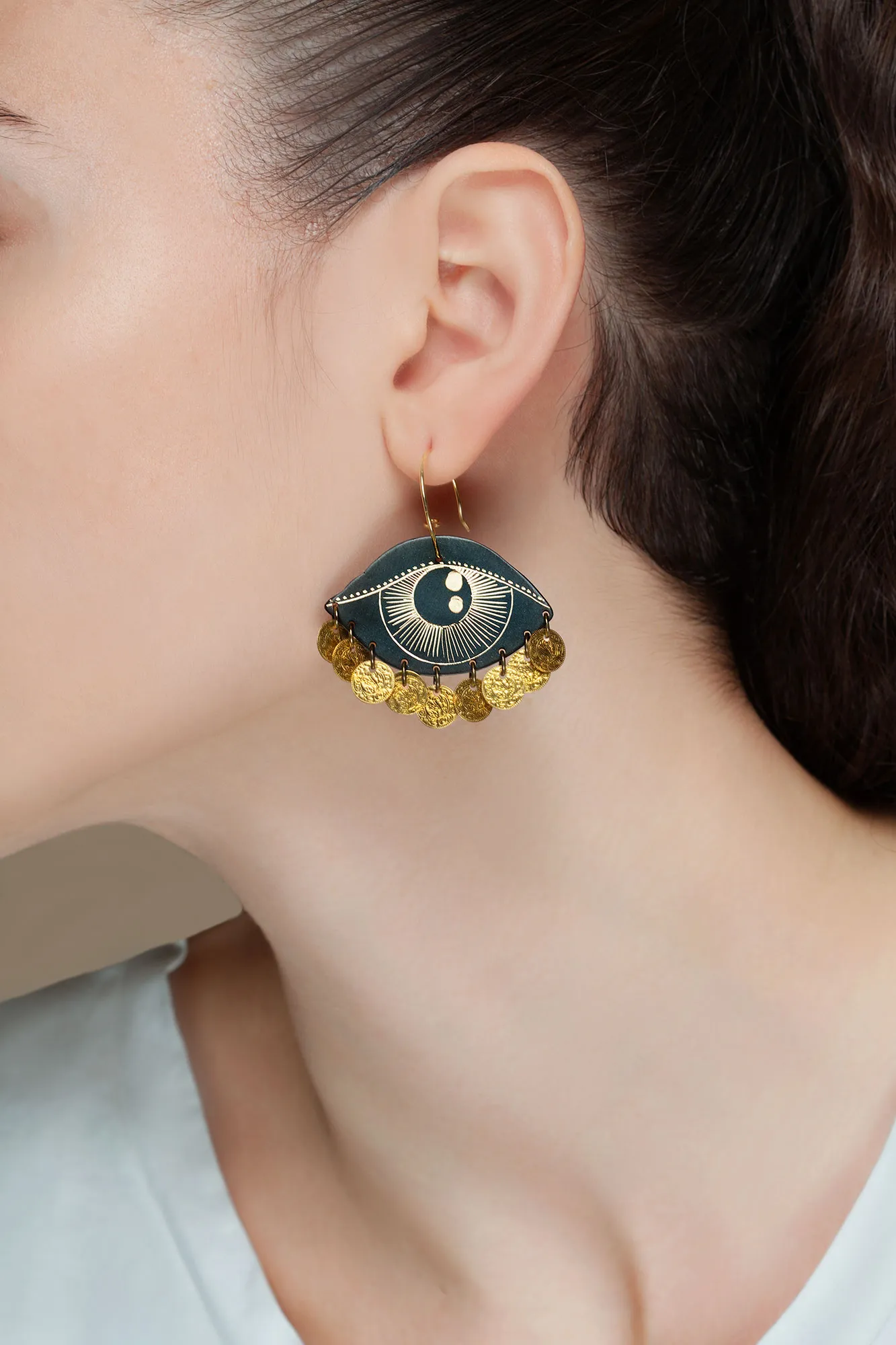 These beautiful and unique Eyes engraved Bronze and Silver Earrings are the perfect addition to any outfit. Crafted with intricately detailed bronze and silver metals, these earrings feature engraved eyes that look like they are watching you wherever you go. The perfect way to add a bit of mystery and intrigue to your look, these earrings are sure to make a statement. With their timeless design and luxurious materials, these earrings will be a treasured accessory for years to come.