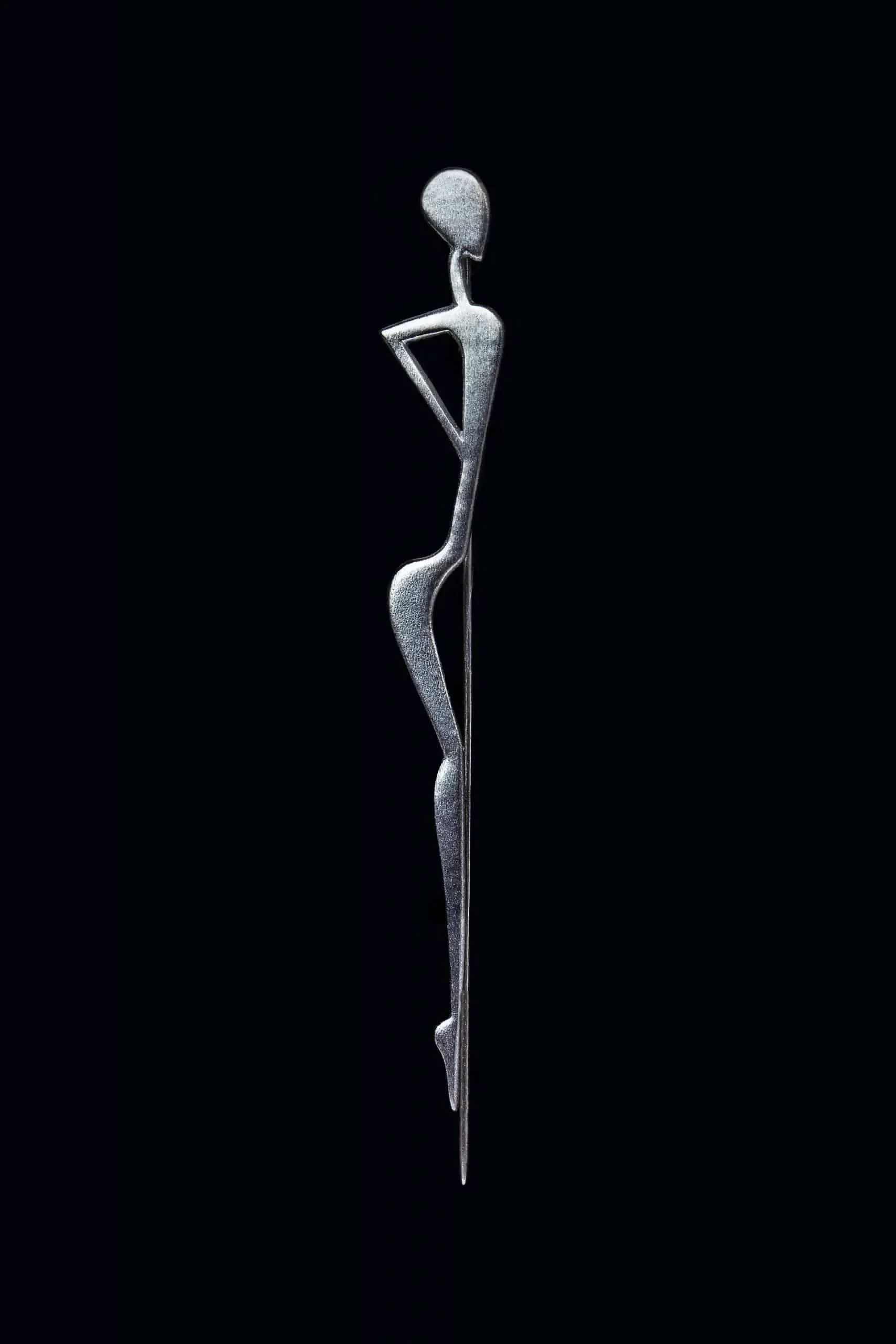 Figure black rhodium plated silver brooch