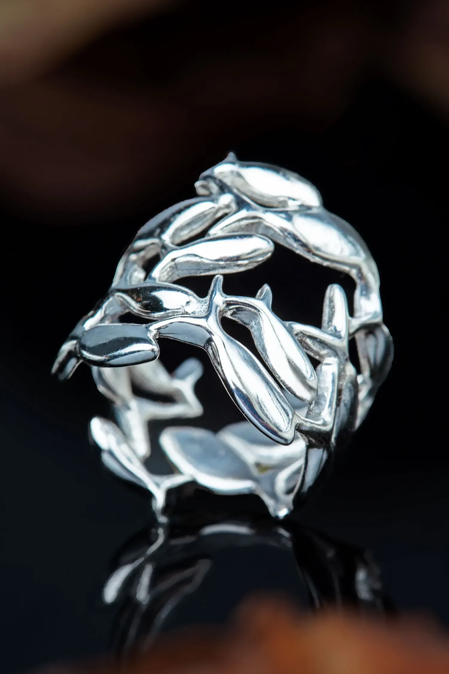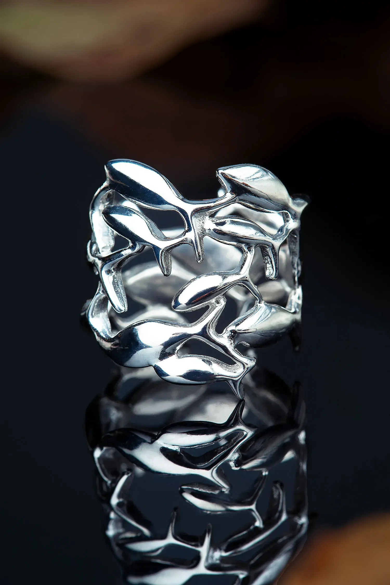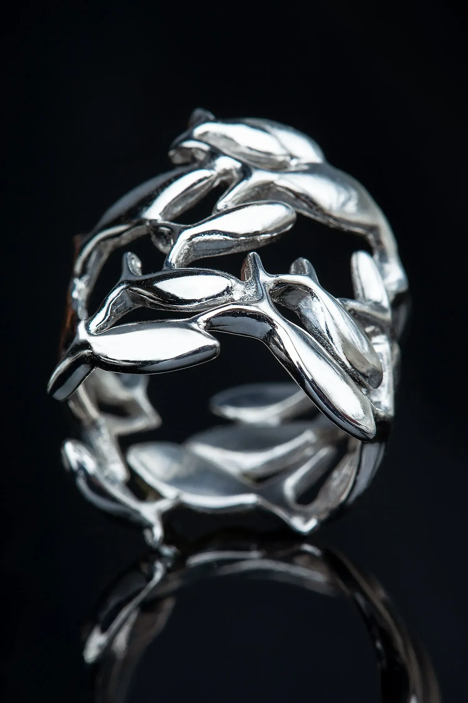 Fish rhodium plated silver ring