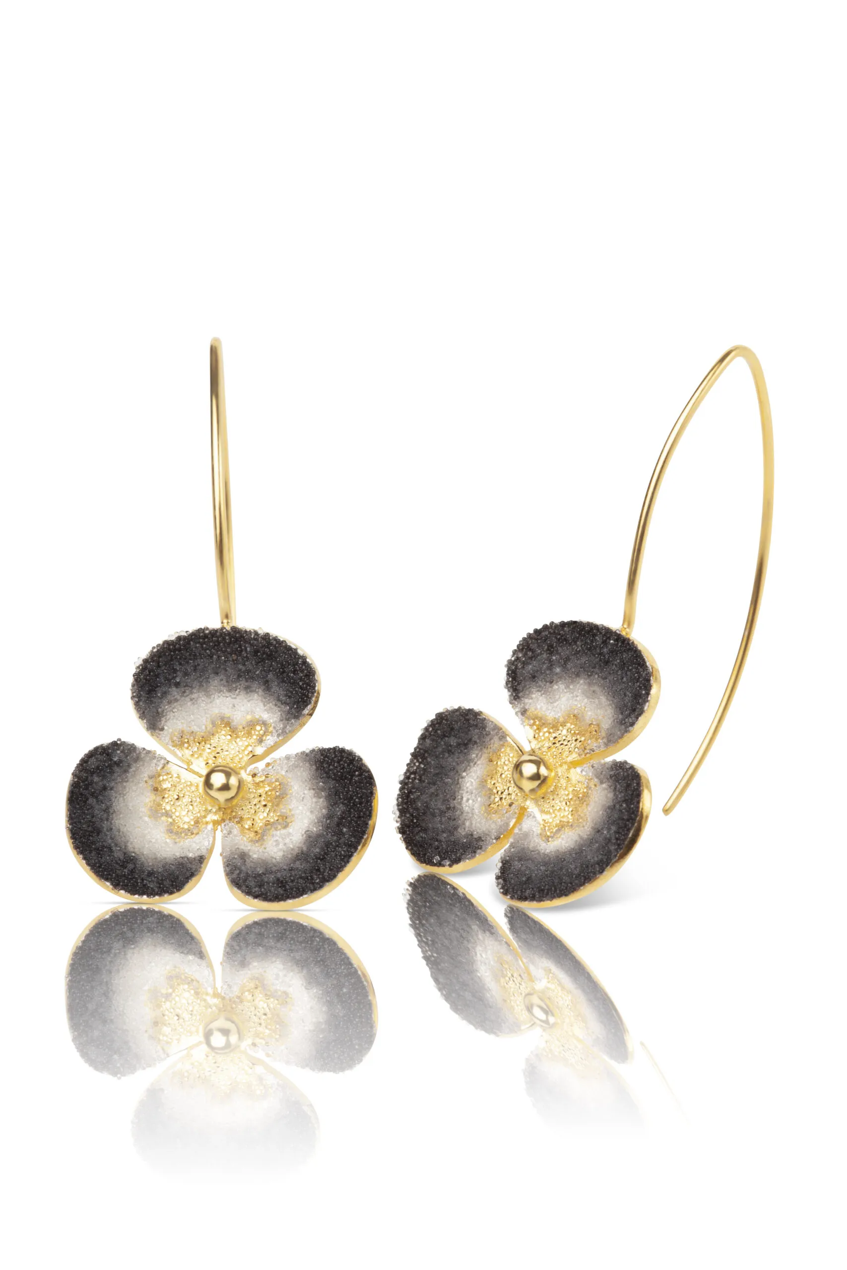 Introducing our stunning Flower Handmade Gold-Plated Silver Earrings, a must-have accessory for any fashion-forward individual. These exquisite earrings are beautifully crafted with intricate details, adorned with sparkling black and white nanocrystals. The gold-plated silver adds a touch of elegance and sophistication, making them perfect for any occasion. These earrings are handmade with love and care, ensuring their durability and unique quality. Add a touch of glamour to your outfit with these dazzling earrings. Shop now and stand out from the crowd.