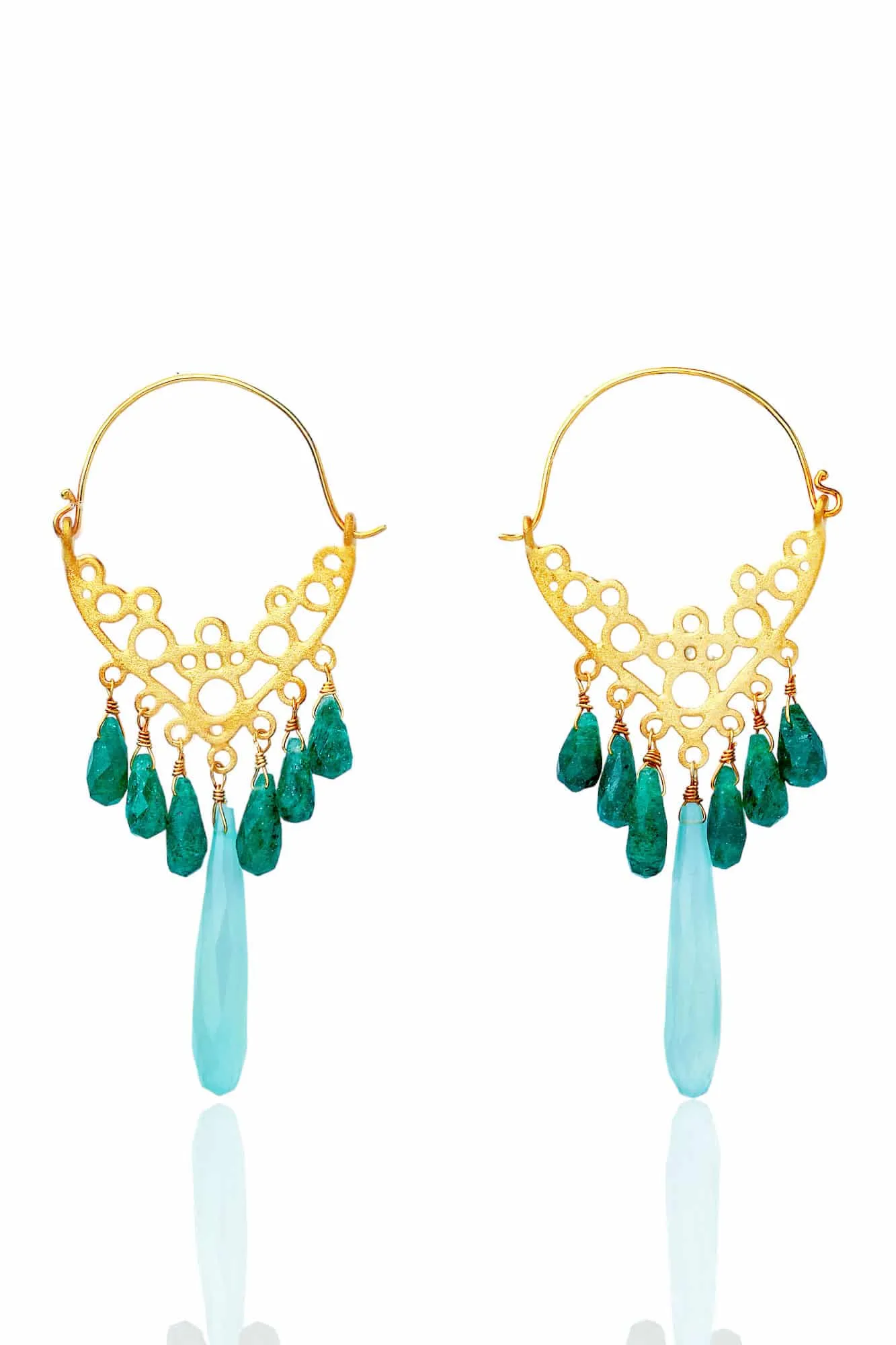 Green agate gold plated silver earrings