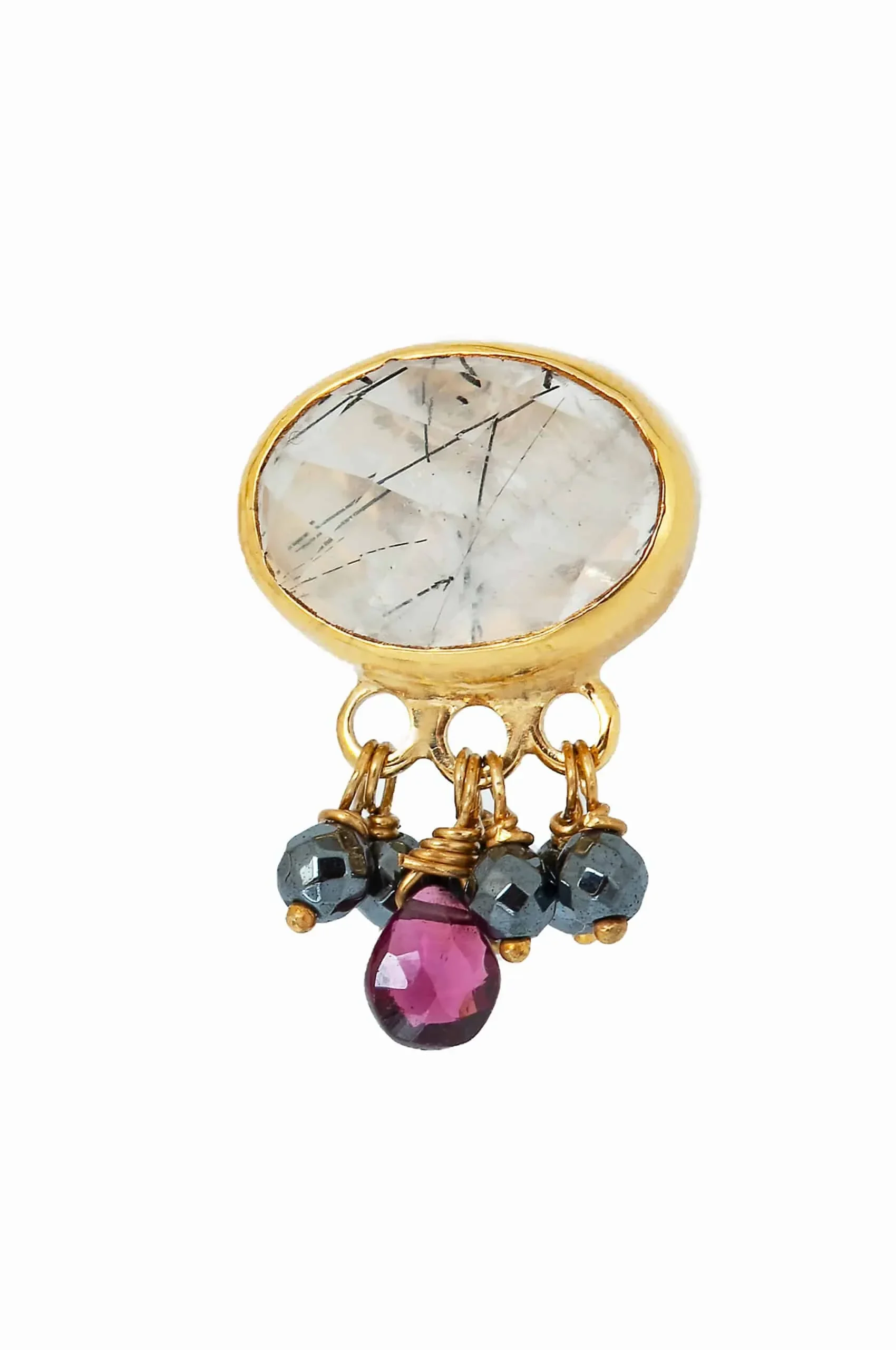 Gold plated silver 925 earrings with rutile, hematite and garnet