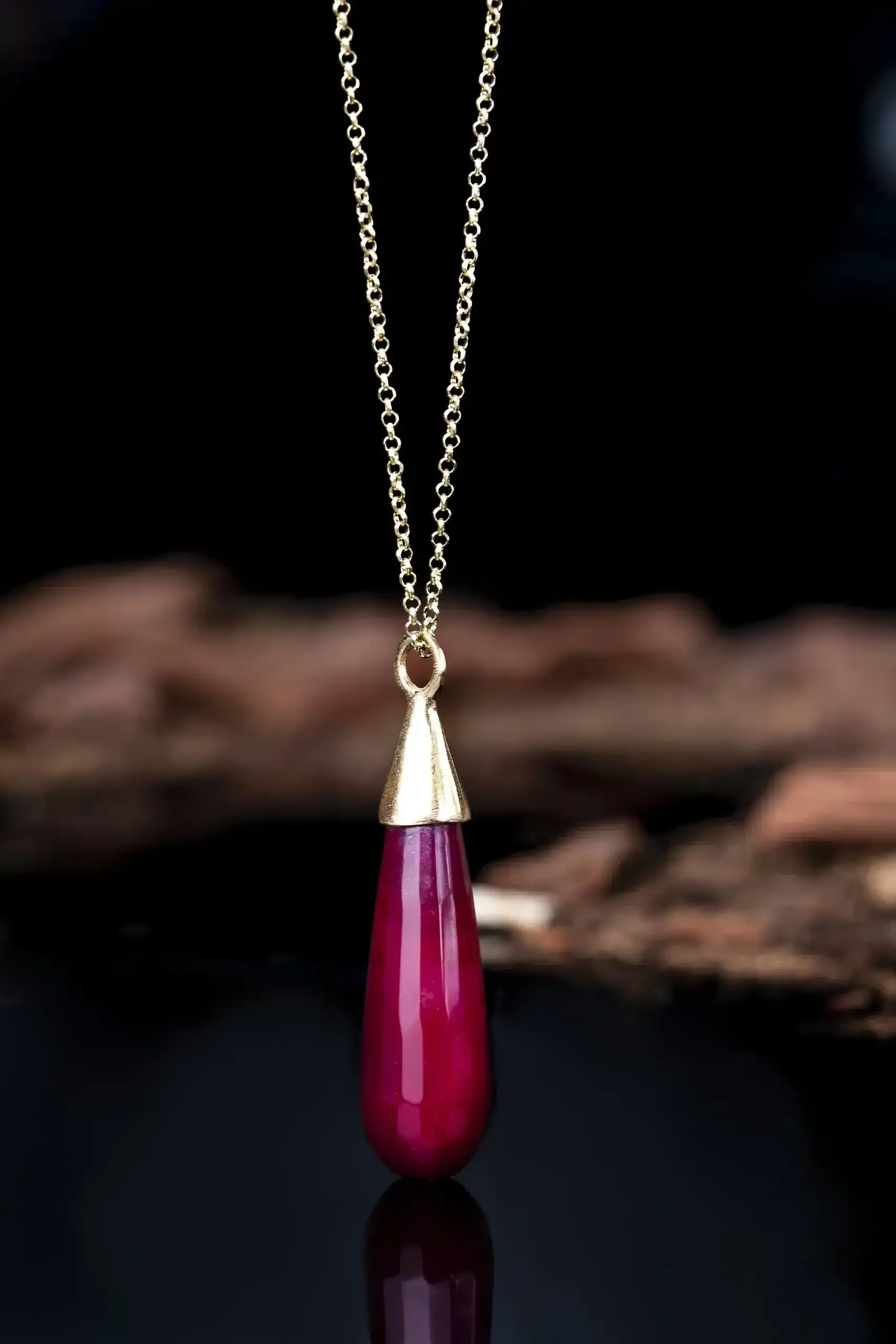 Gold plated silver long necklace with quartz