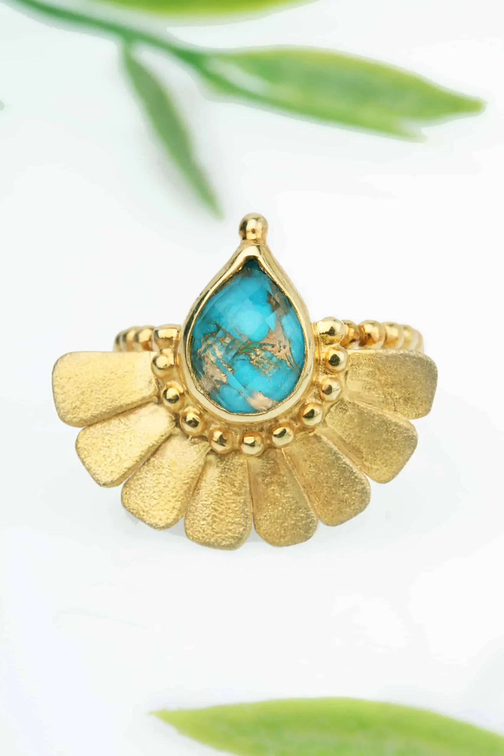 Turquoise gold plated silver ring