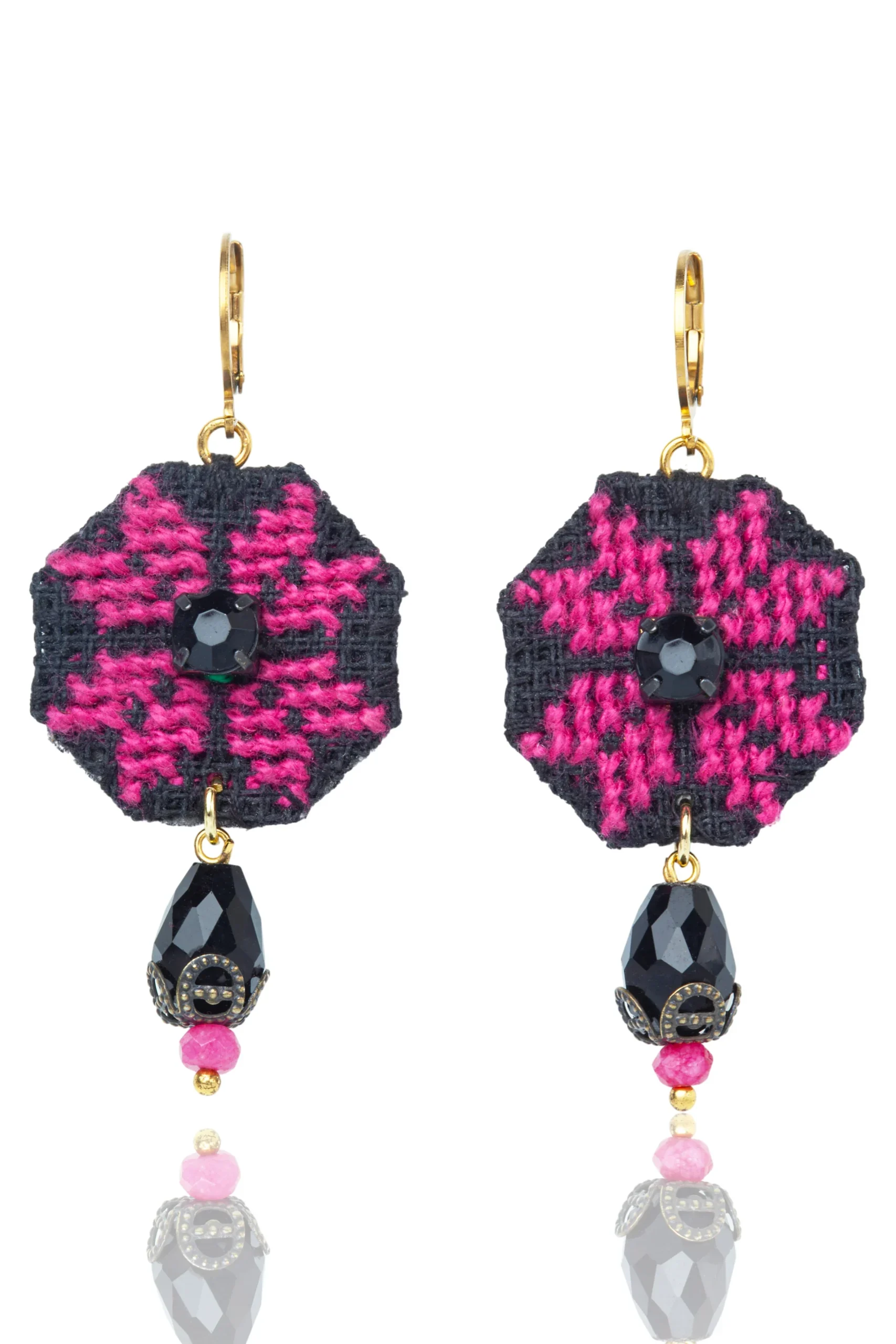 Handmade Embroidered Geometric Earrings