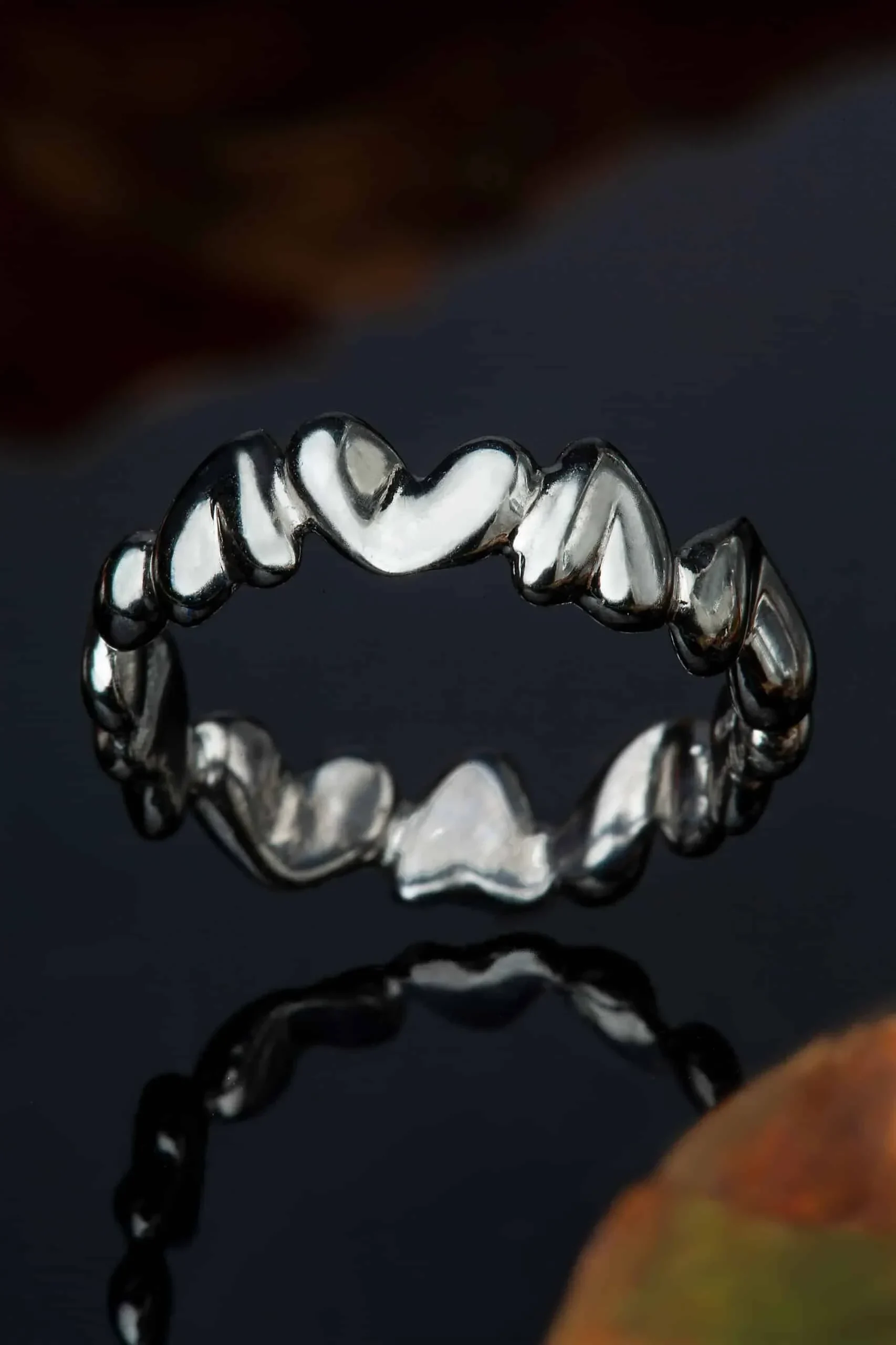 Hearts handmade black silver ring