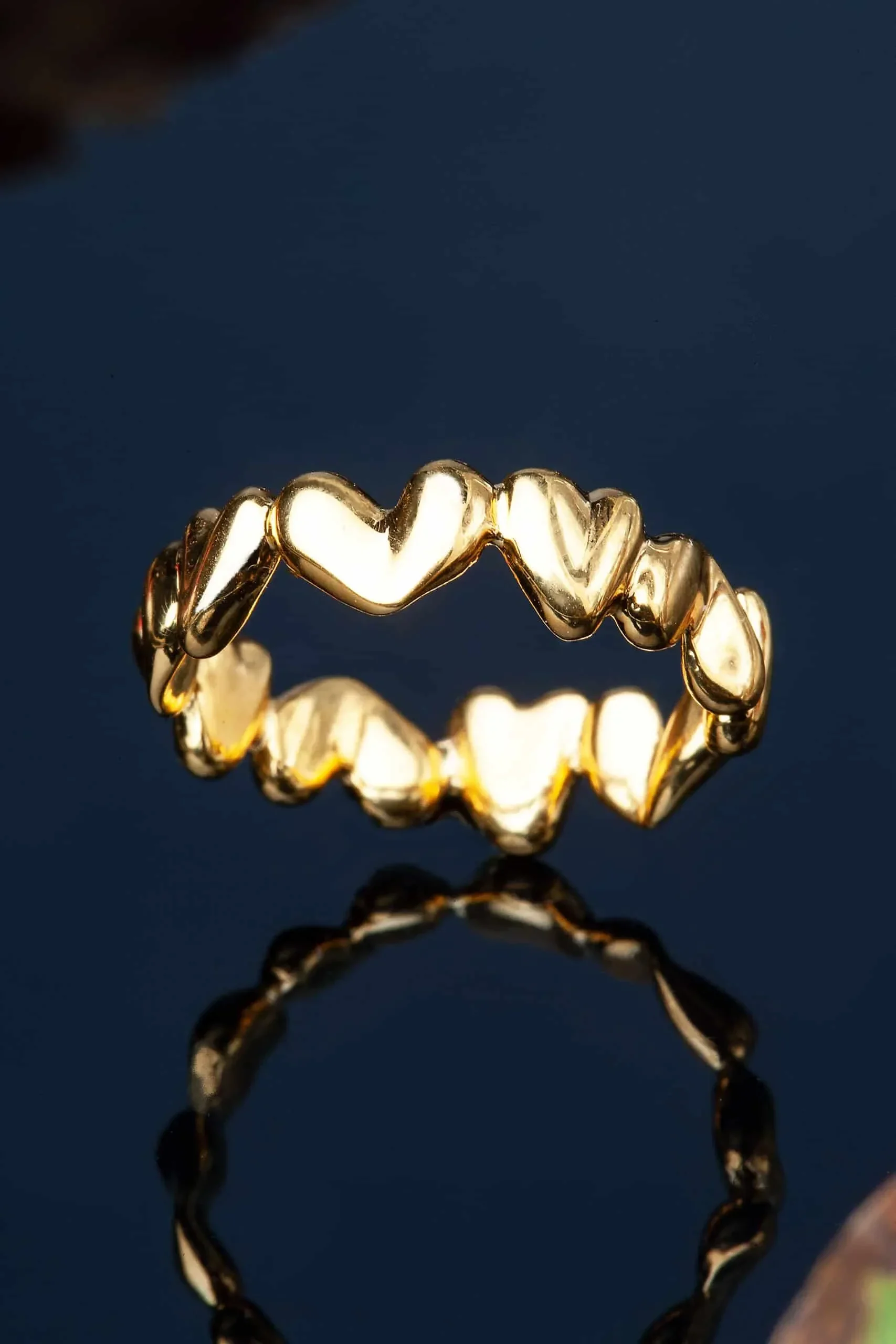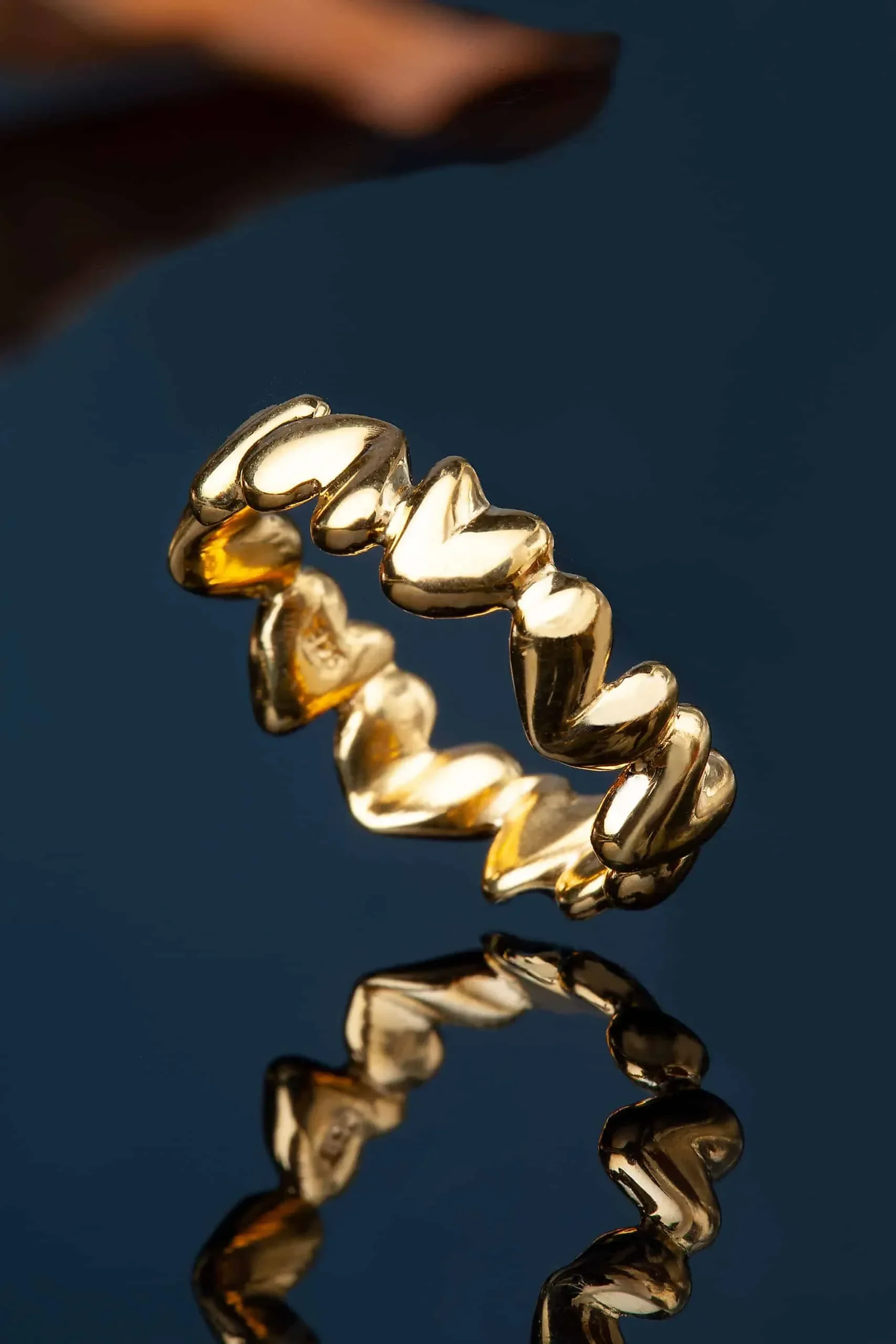 Add a touch of elegance and charm to your jewellery collection with our Hearts gold-plated silver ring. Crafted with precision and care, this ring features a stunning heart-shaped design, plated in luxurious gold over high-quality silver. The intricate detailing and sleek finish make it a standout piece that will elevate any outfit. Whether it’s a romantic date or a casual outing, this ring is sure to make a statement. Its durable construction ensures long-lasting wear, while the gold plating adds a touch of opulence. Perfect for gifting or treating yourself, this Hearts gold-plated silver ring is a must-have accessory. Order now and let your heart shine!