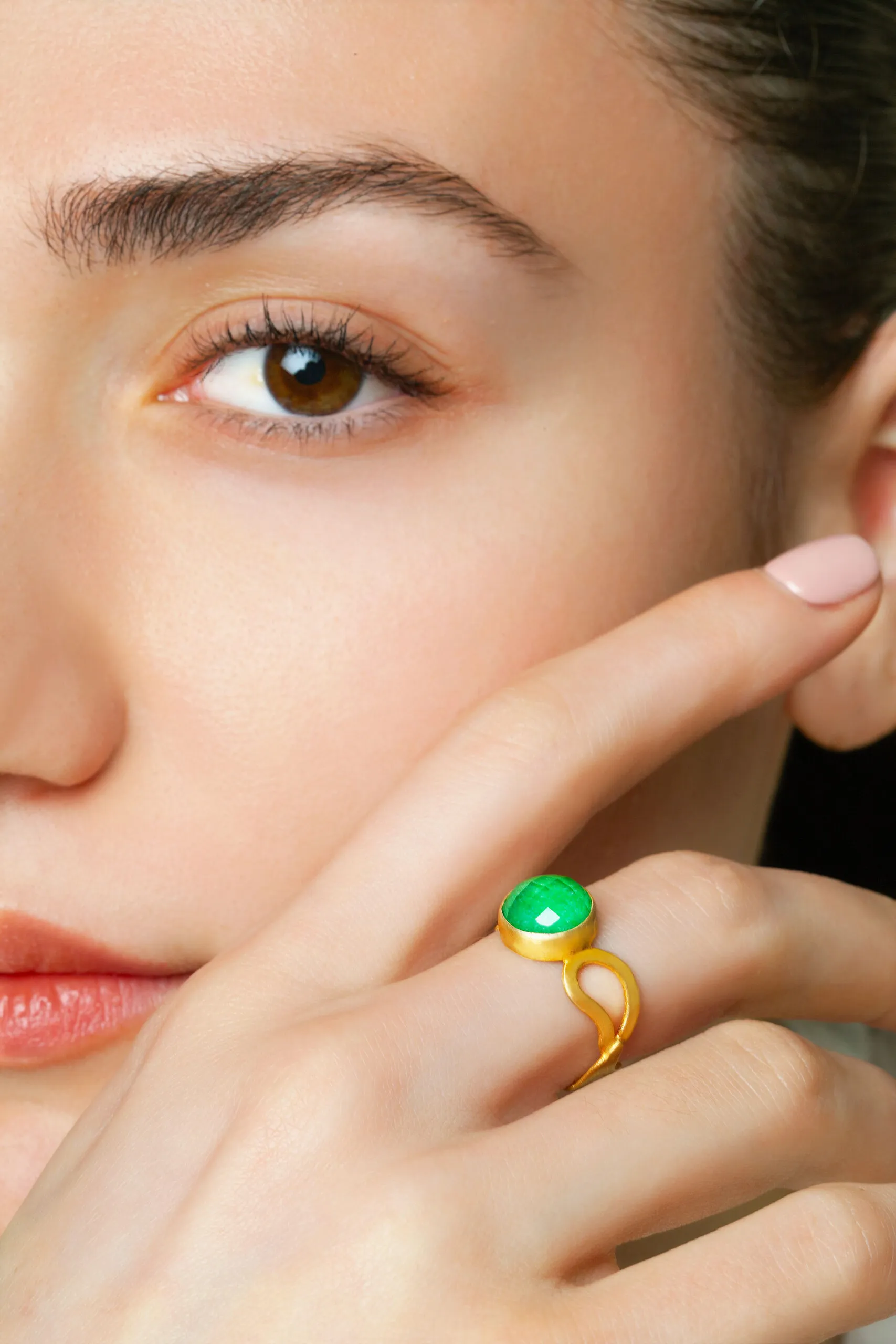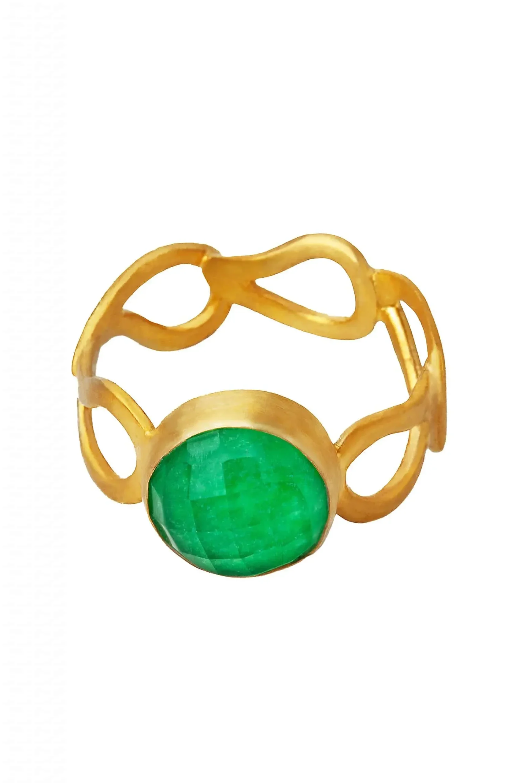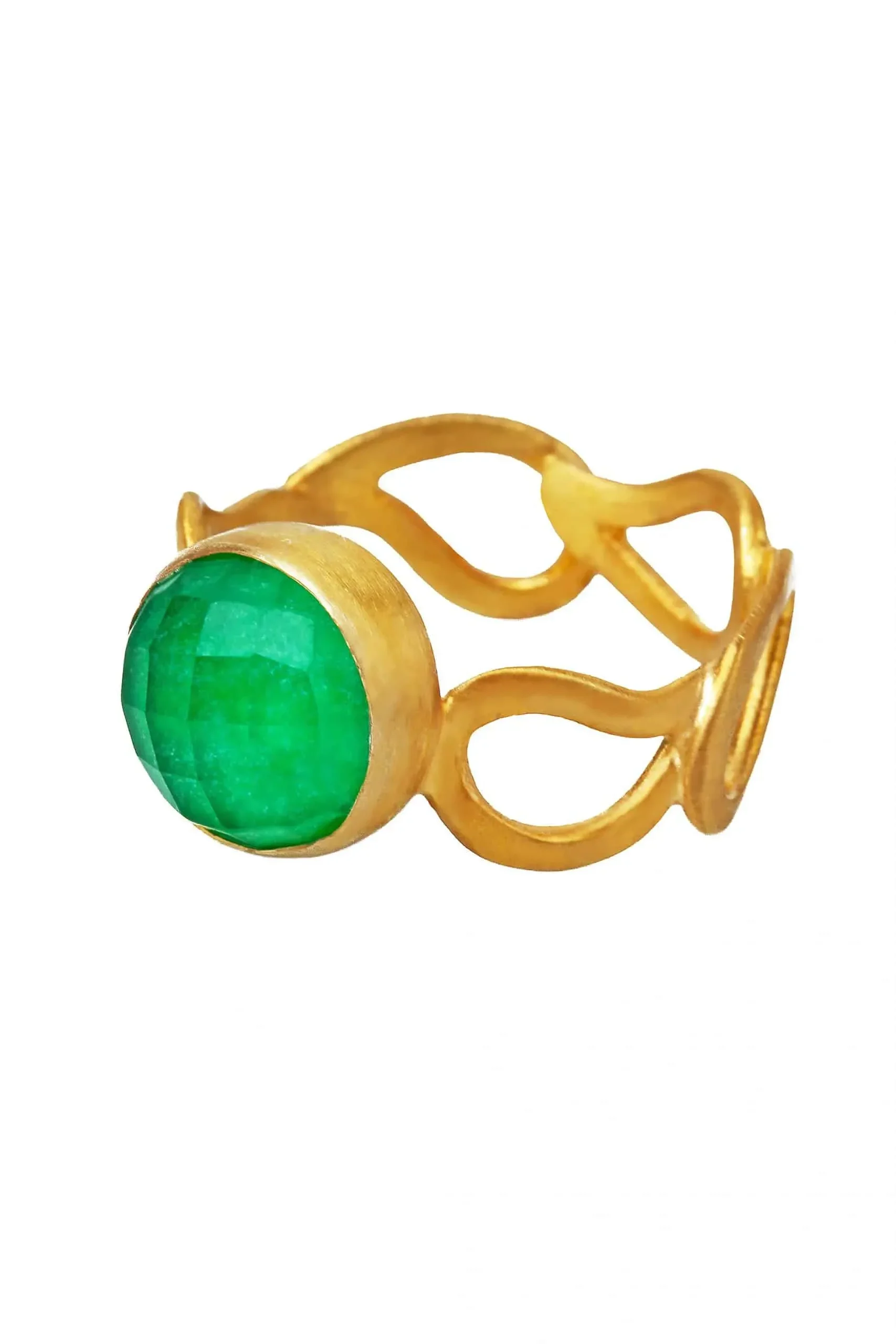 Jade paisley gold plated silver ring
