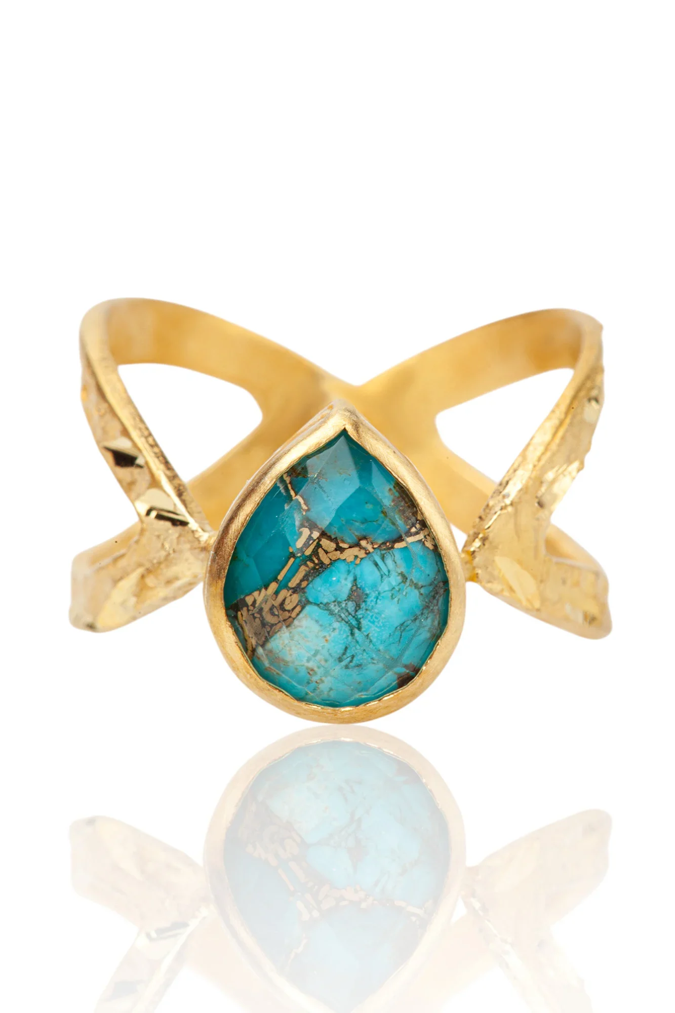 Introducing the stunning Leaf Chrysocolla gold-plated textured silver ring, a must-have for any jewellery collection. Crafted with a delicate leaf design and adorned with a mesmerizing Chrysocolla stone, this ring exudes elegance and natural beauty. The textured silver band adds a touch of modernity, while the gold plating adds a touch of luxury. This ring is perfect for both everyday wear and special occasions. So, make a statement and add this unique piece to your ensemble. Order now and experience the beauty of nature at your fingertips.