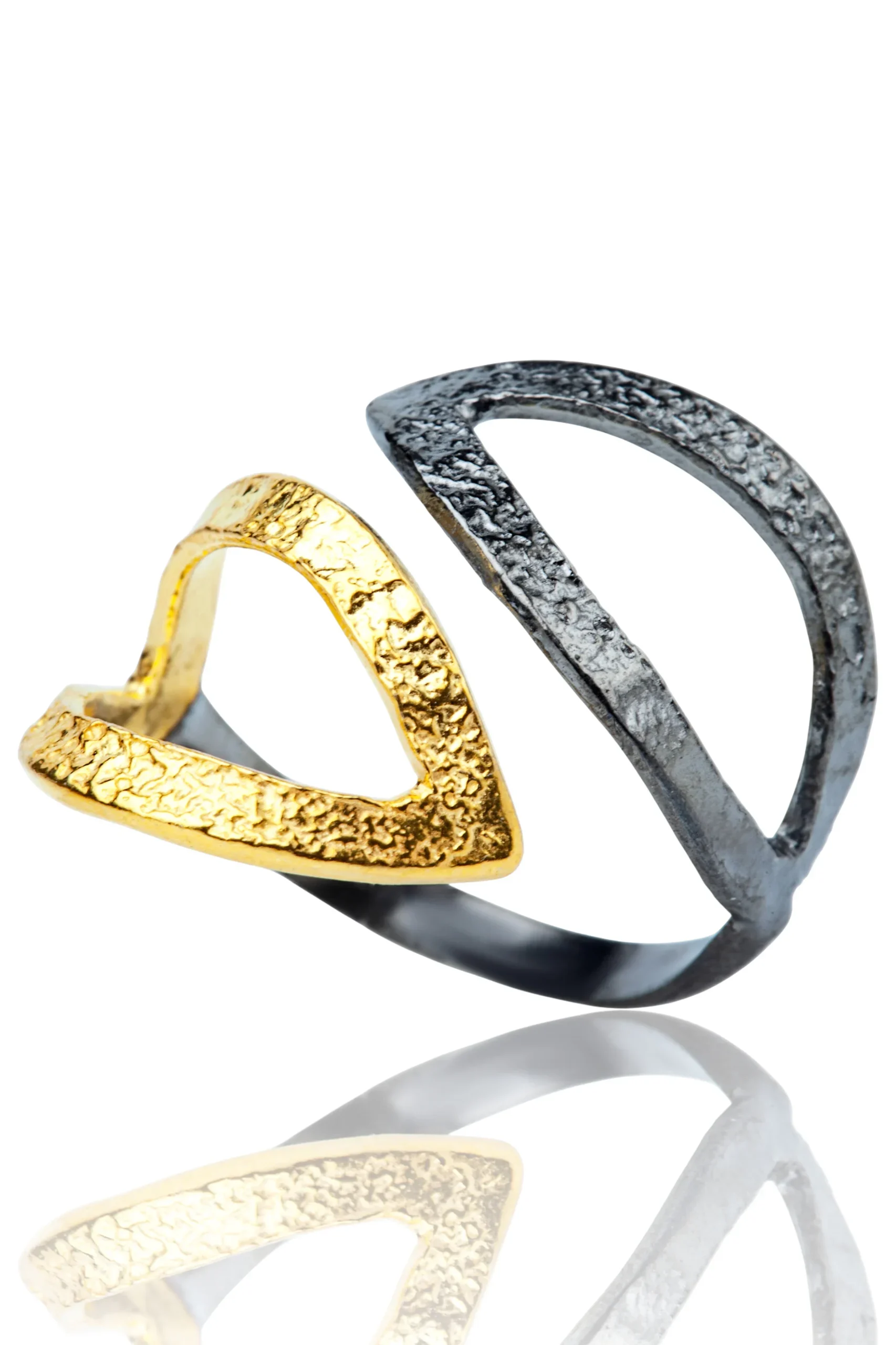 Introducing our stunning Leaves handmade minimal gold and black rhodium plated ring. Crafted with care and precision, this ring features delicate leaves that are plated in both gold and black rhodium for a unique and elegant look. The minimalist design adds a touch of sophistication, making it perfect for both casual and formal occasions. Our ring is handmade, ensuring high-quality and attention to detail. Elevate your style with this one-of-a-kind piece that is sure to make a statement. Order now and add a touch of nature-inspired beauty to your jewellery collection.