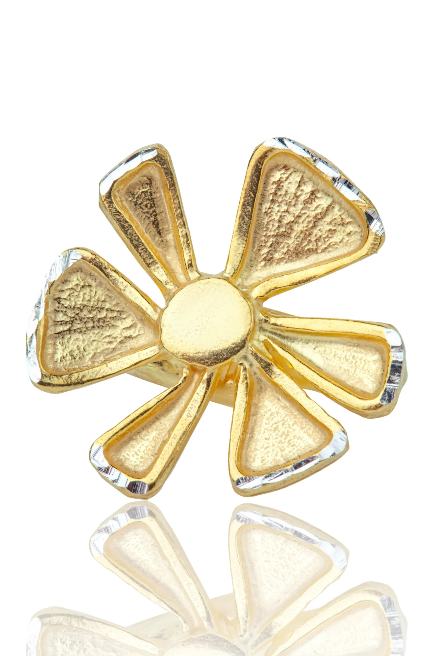 Introducing our stunning Minimal Flower gold-plated silver adjustable ring. Crafted from high-quality silver and plated with lustrous gold, this ring boasts a delicate and intricate flower design that exudes femininity and elegance. The adjustable band ensures a perfect fit for any finger, making it a versatile and timeless piece. Whether you wear it alone or stack it with other rings, this ring is sure to add a touch of sophistication to any outfit. Perfect for daily wear or special occasions, this ring is a must-have for any jewellery collection. Elevate your style with our Minimal Flower gold-plated silver adjustable ring.