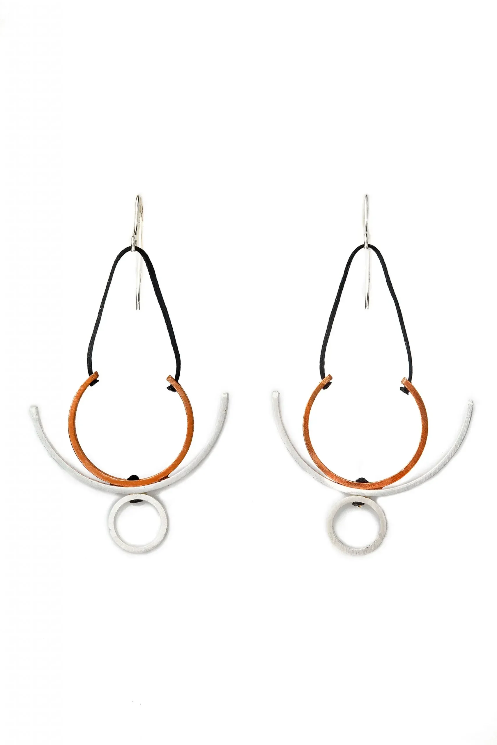 Minimal geometric multi-plated bronze earrings. Silver 925 hook earwires