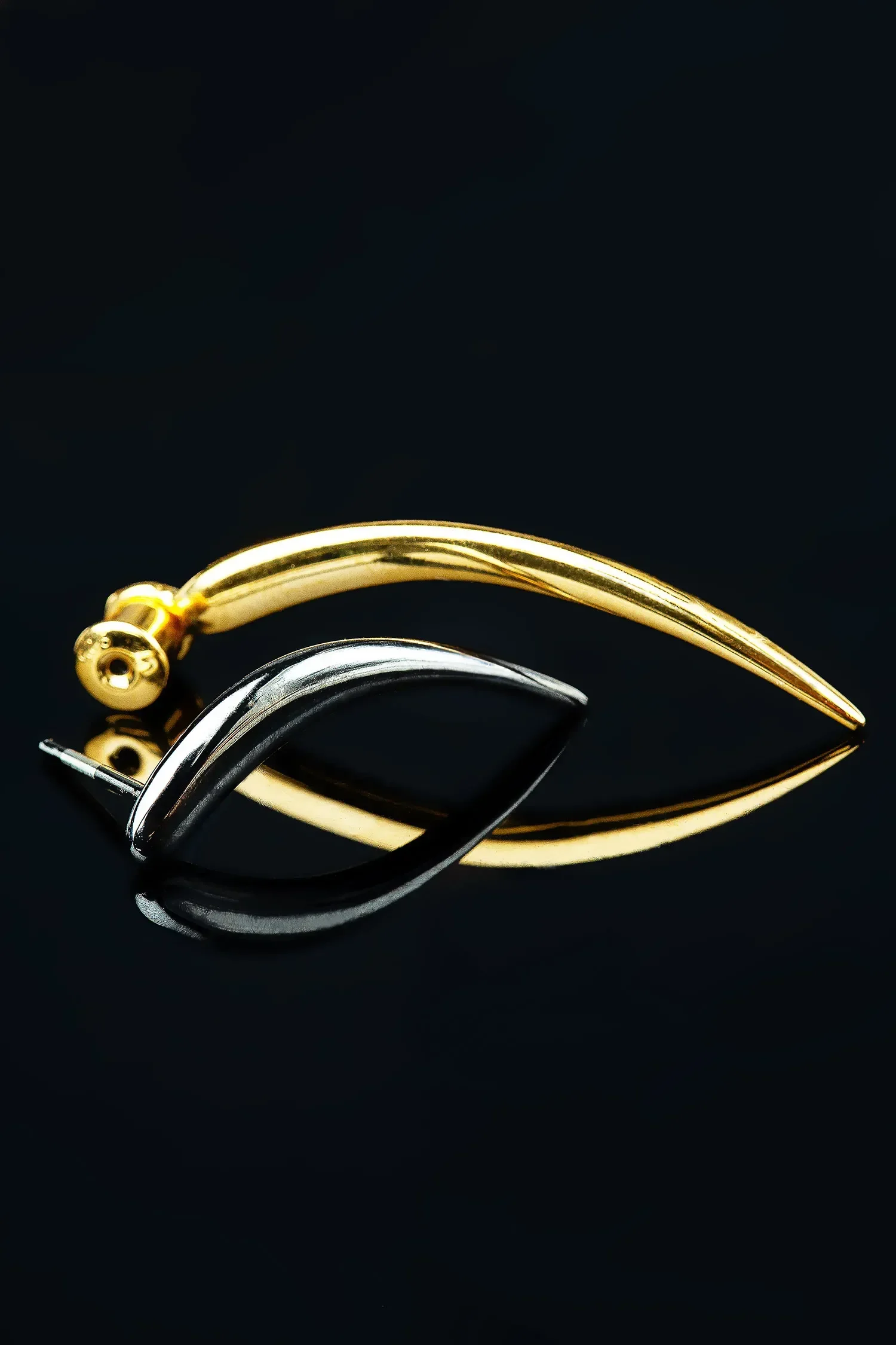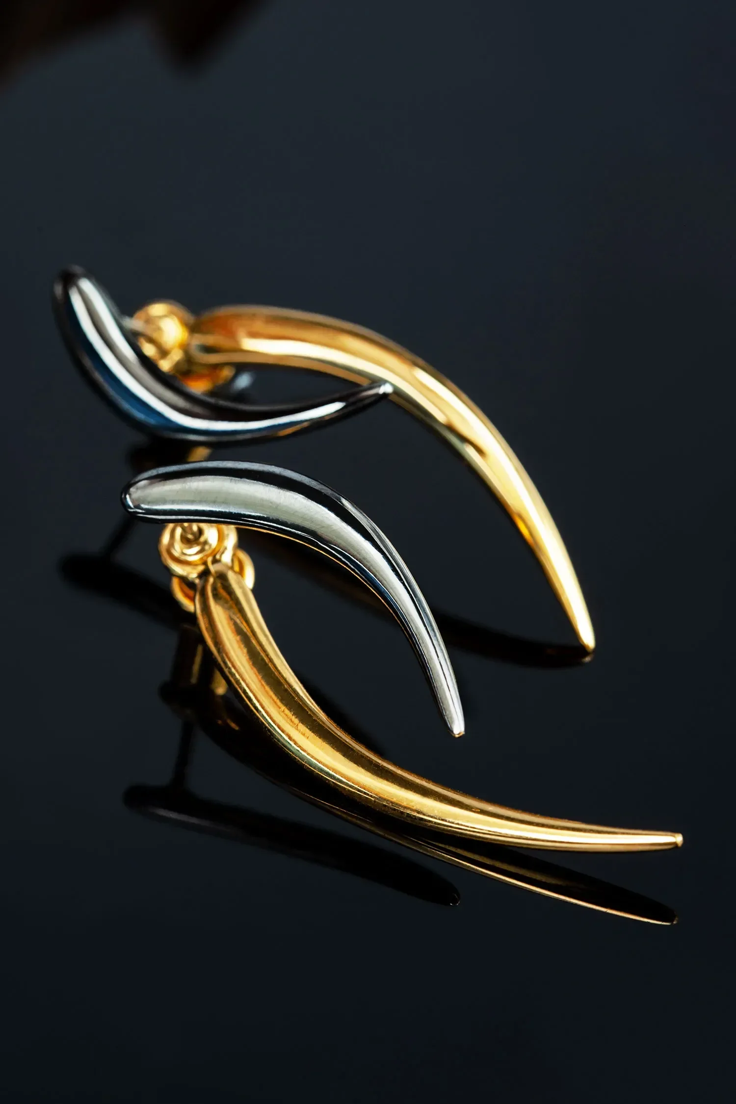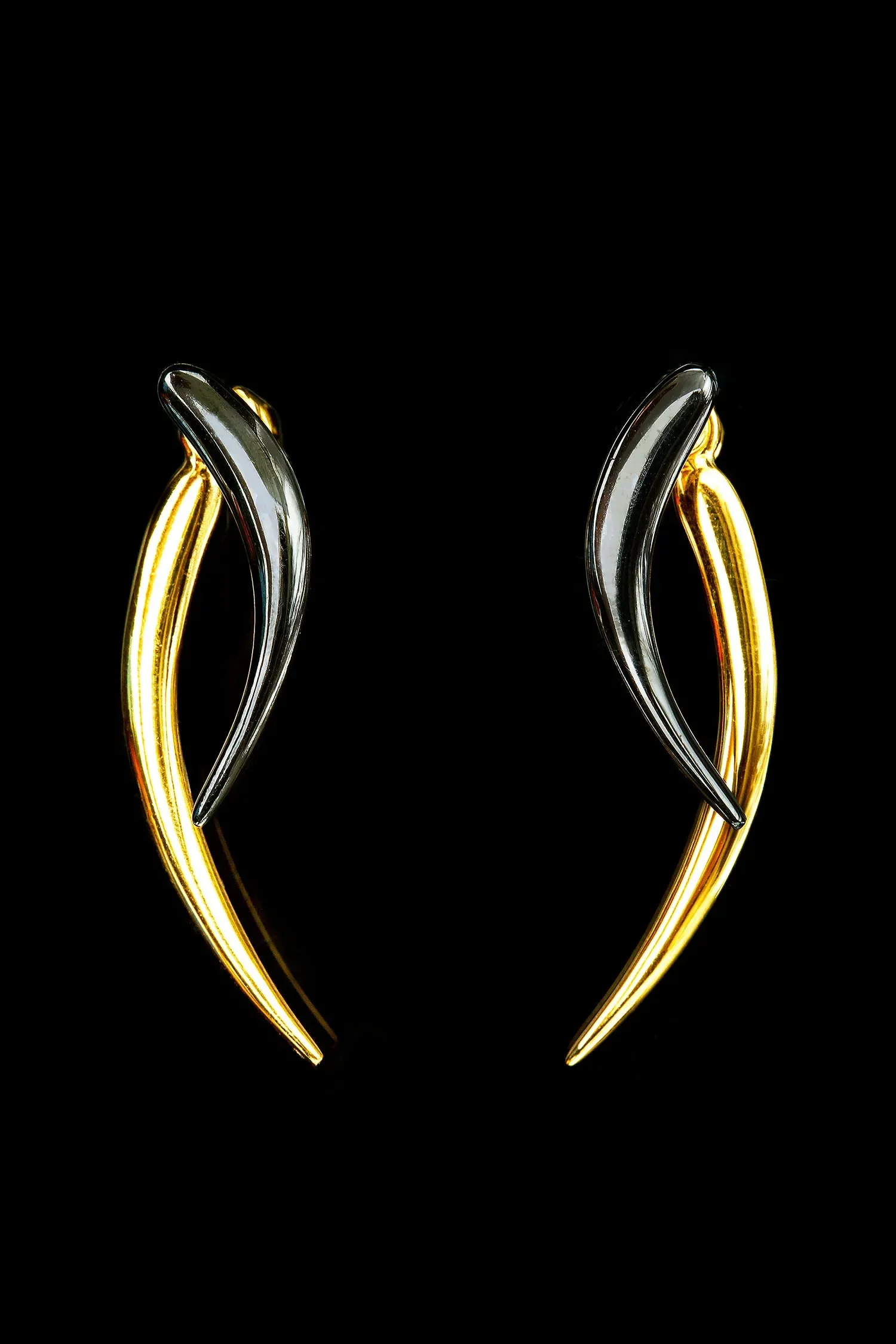 These minimal gold and black rhodium plated silver earrings are the perfect accessory to add a touch of sophistication and elegance to any look. Crafted with a unique blend of gold and black rhodium plating, these earrings are sure to stand out and make a statement. The lightweight design and comfortable fit make them the perfect addition to any outfit, day or night. With these earrings, you can show off your style without compromising on comfort.