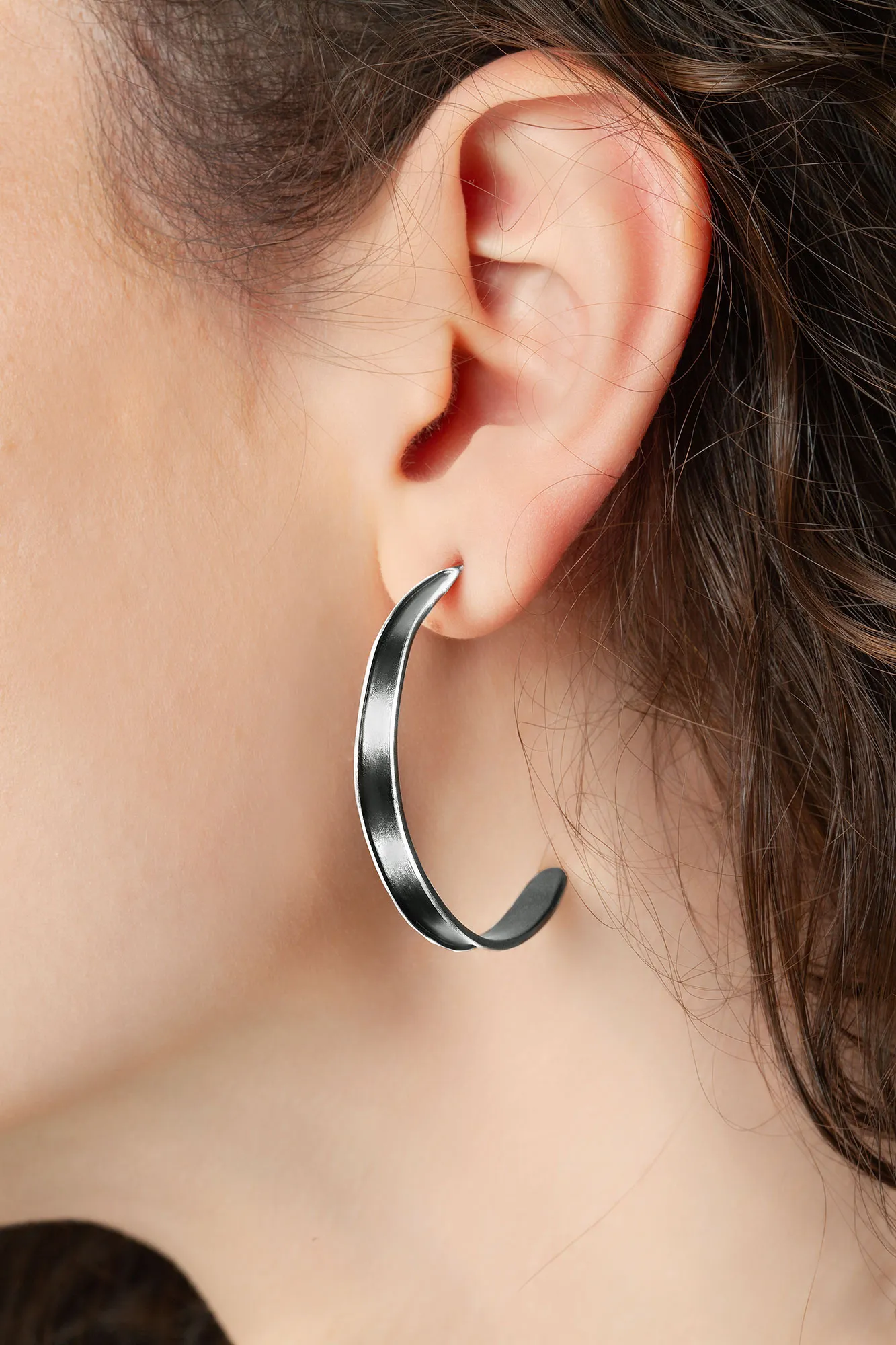 Minimal handmade oxidized silver hoops