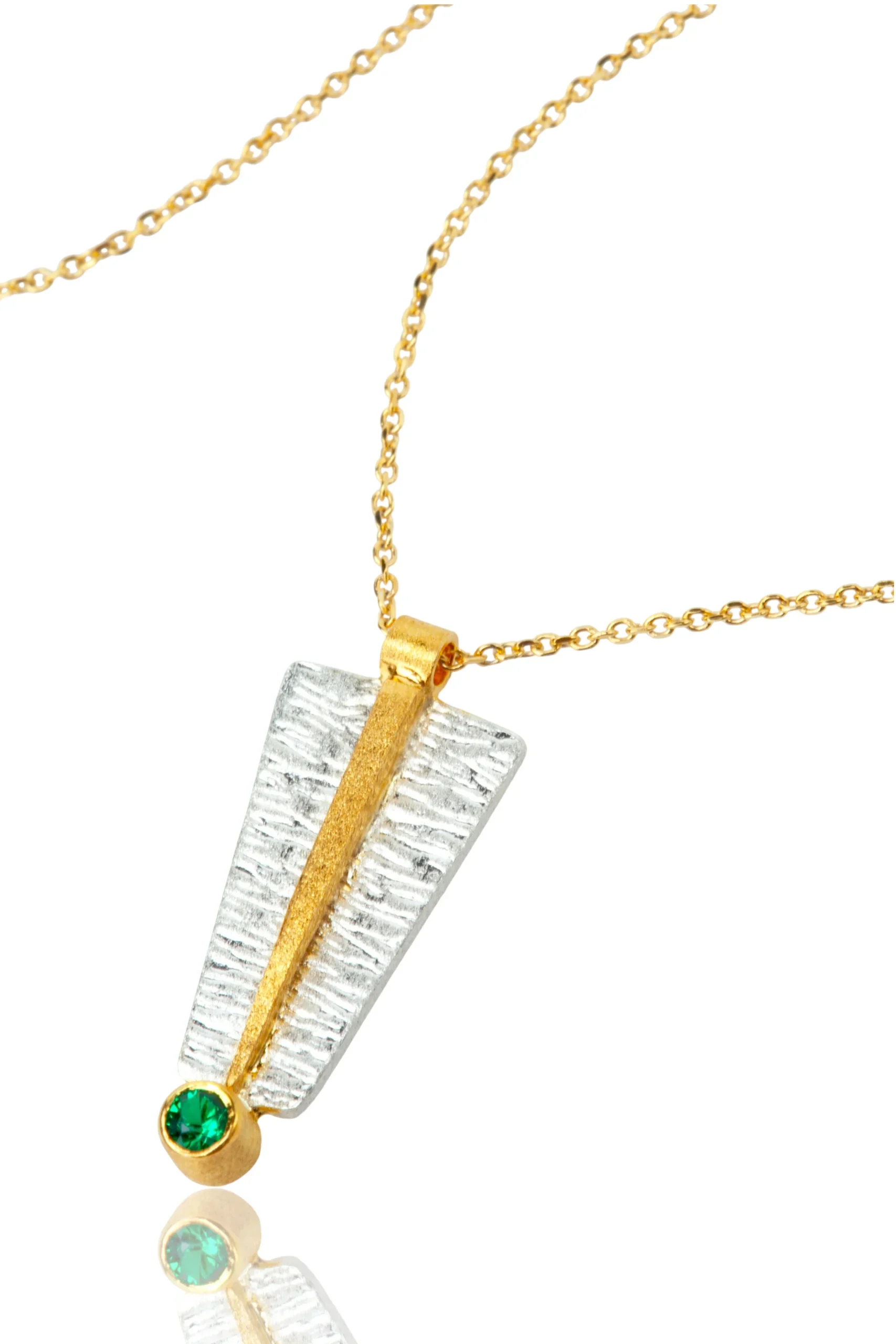 Introducing our stunning handmade silver necklace, featuring a vibrant green zircon and delicate gold-plated detail. Crafted with minimalistic design, this necklace exudes elegance and sophistication. The green zircon, known for its healing properties, adds a touch of positivity and balance to your everyday look. Made with high-quality materials, this necklace is a timeless addition to your jewellery collection. Perfect for any occasion, this necklace will elevate any outfit with its unique charm. Shop now and make a statement with our minimal handmade silver necklace.