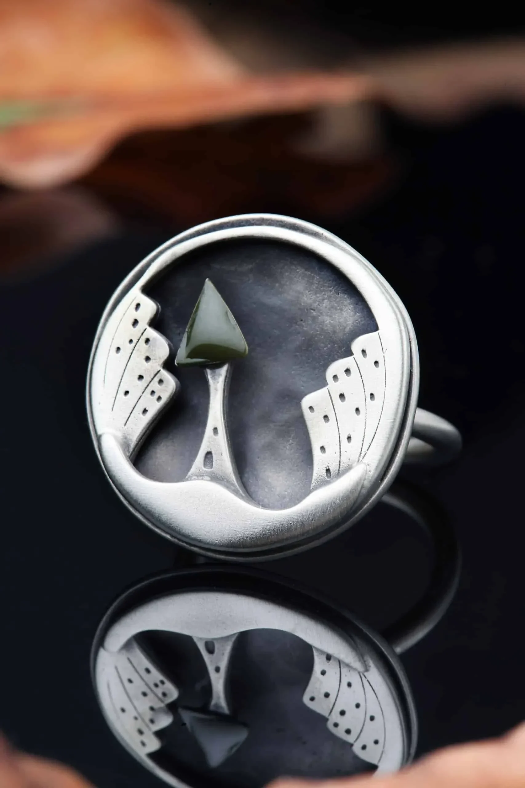 Night city handmade silver round ring