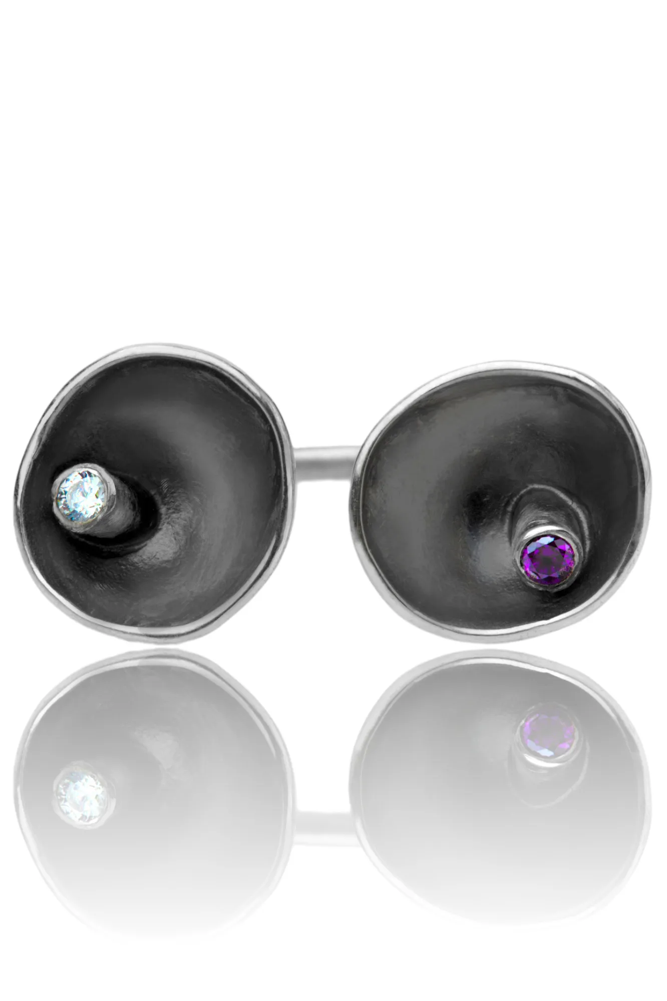 Silver ring with amethyst and zircon
