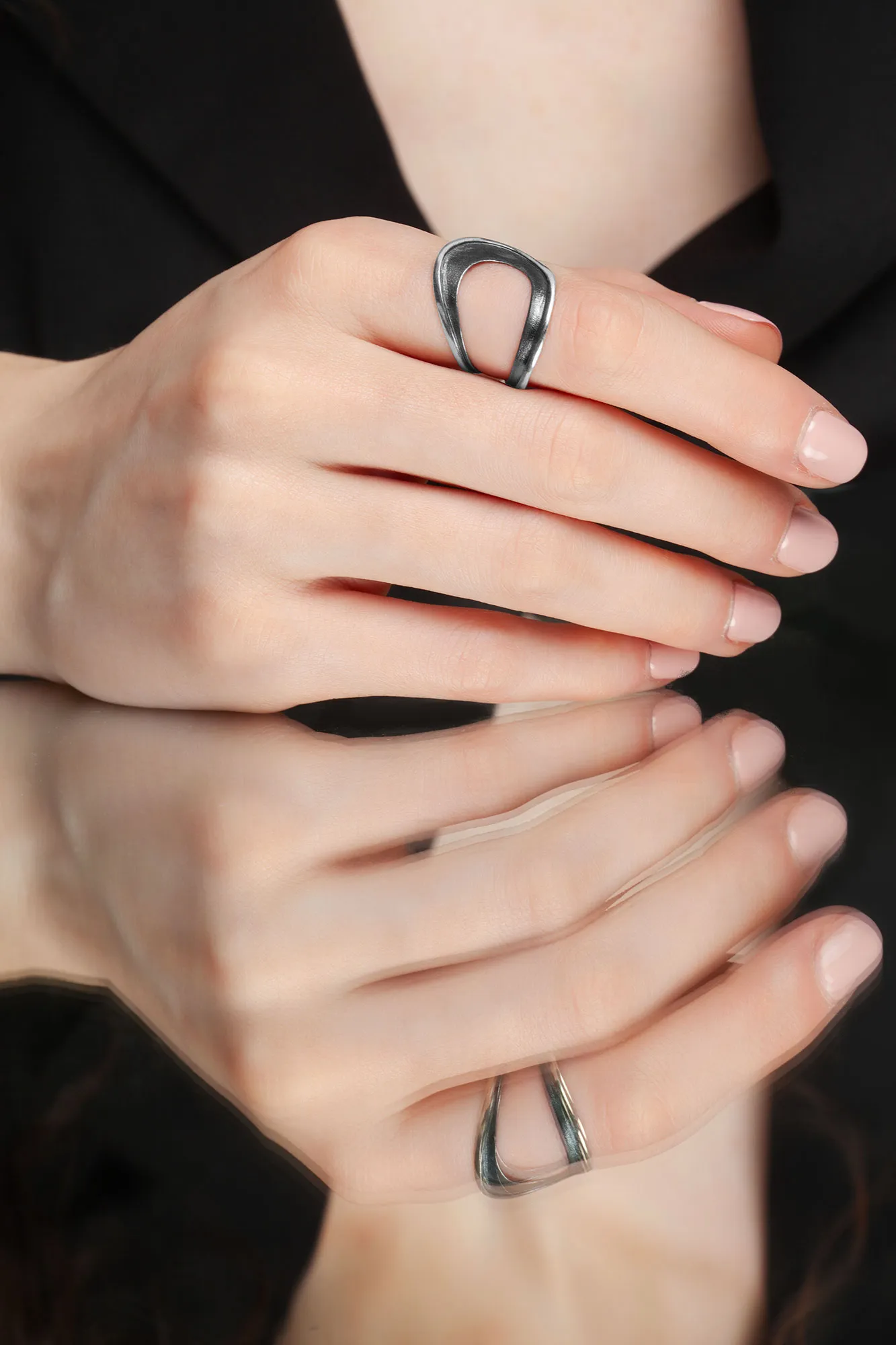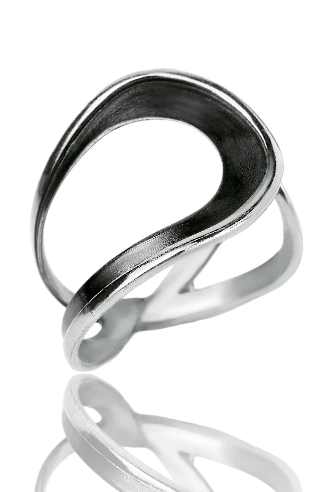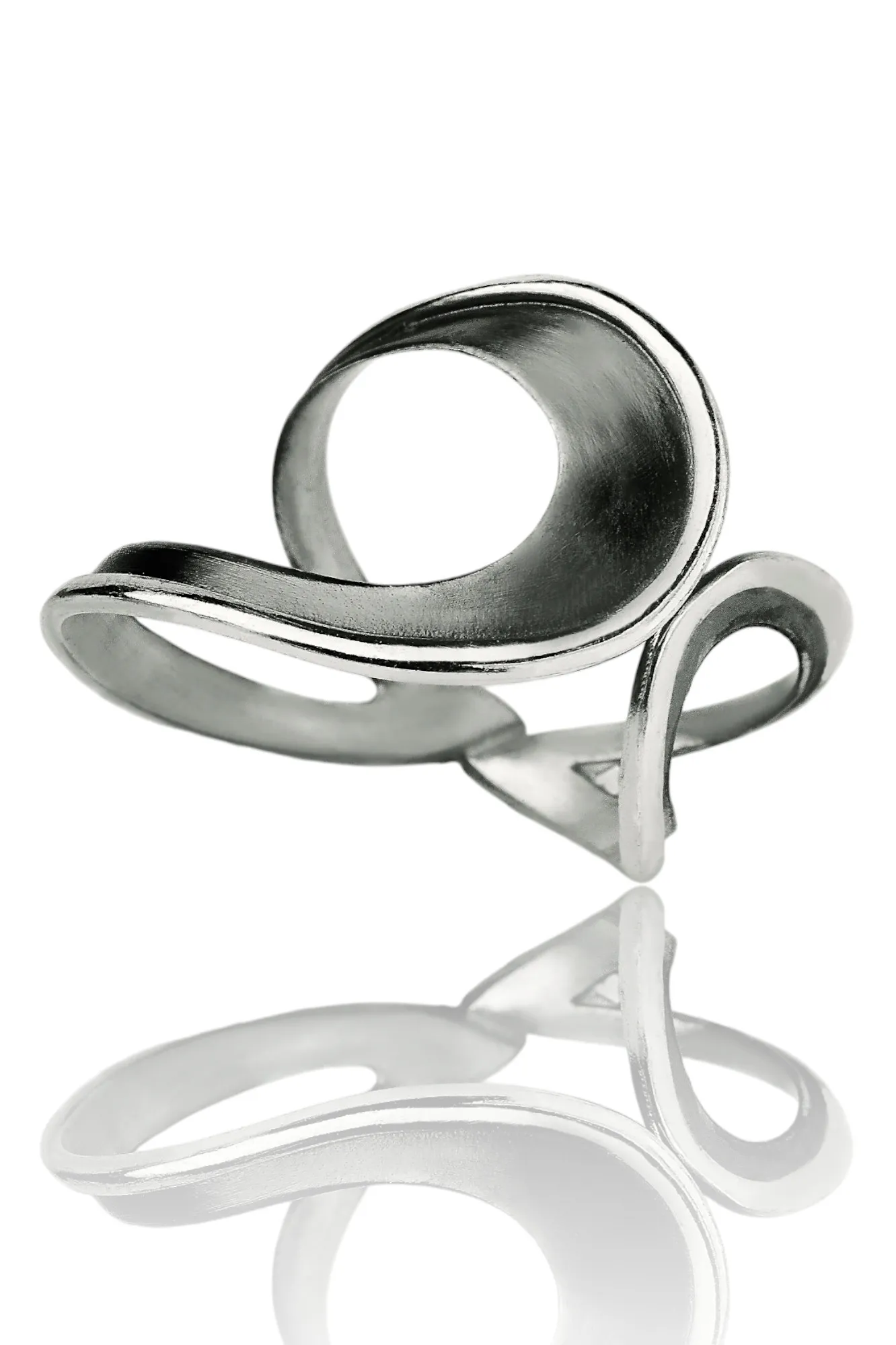 A stunning handcrafted ring that reinterprets the classic paisley motif through a modern, minimalist lens. Crafted from high-quality oxidized silver, this piece blends tradition with contemporary style. The dark patina beautifully accentuates the curves of the design, making it a subtle yet perfectly elegant accessory for everyday wear.