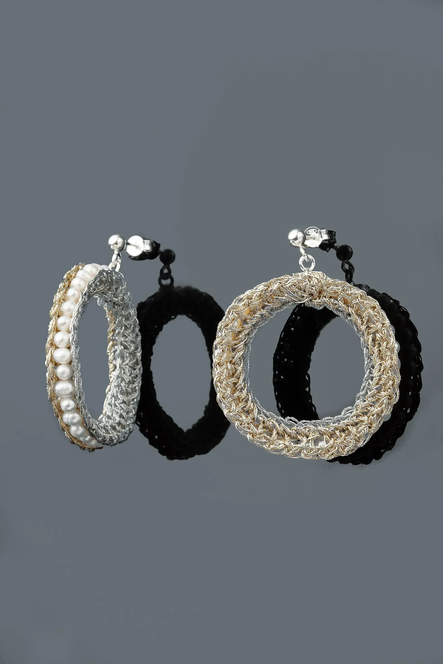 Introducing the perfect blend of elegance and craftsmanship. Our round crochet knit silver earrings with pearls. These stunning earrings are hand-crafted using the finest quality silver and adorned with delicate pearls. Making them a must-have for any fashion-forward woman.