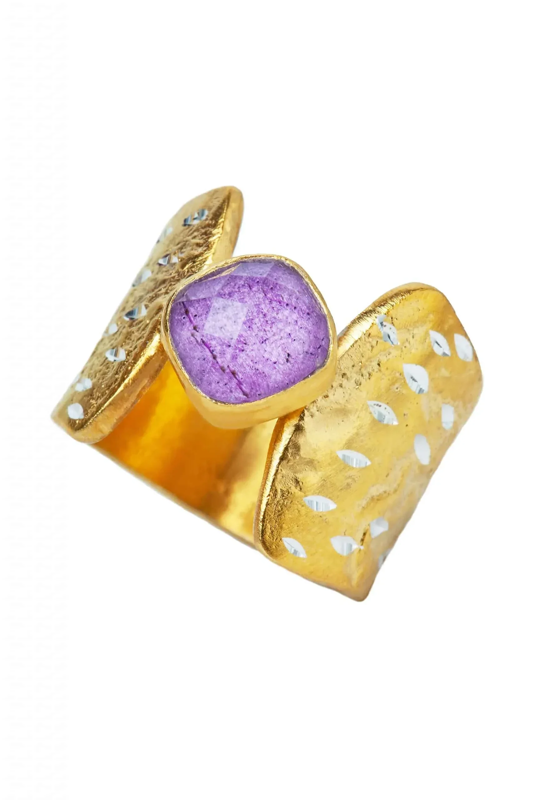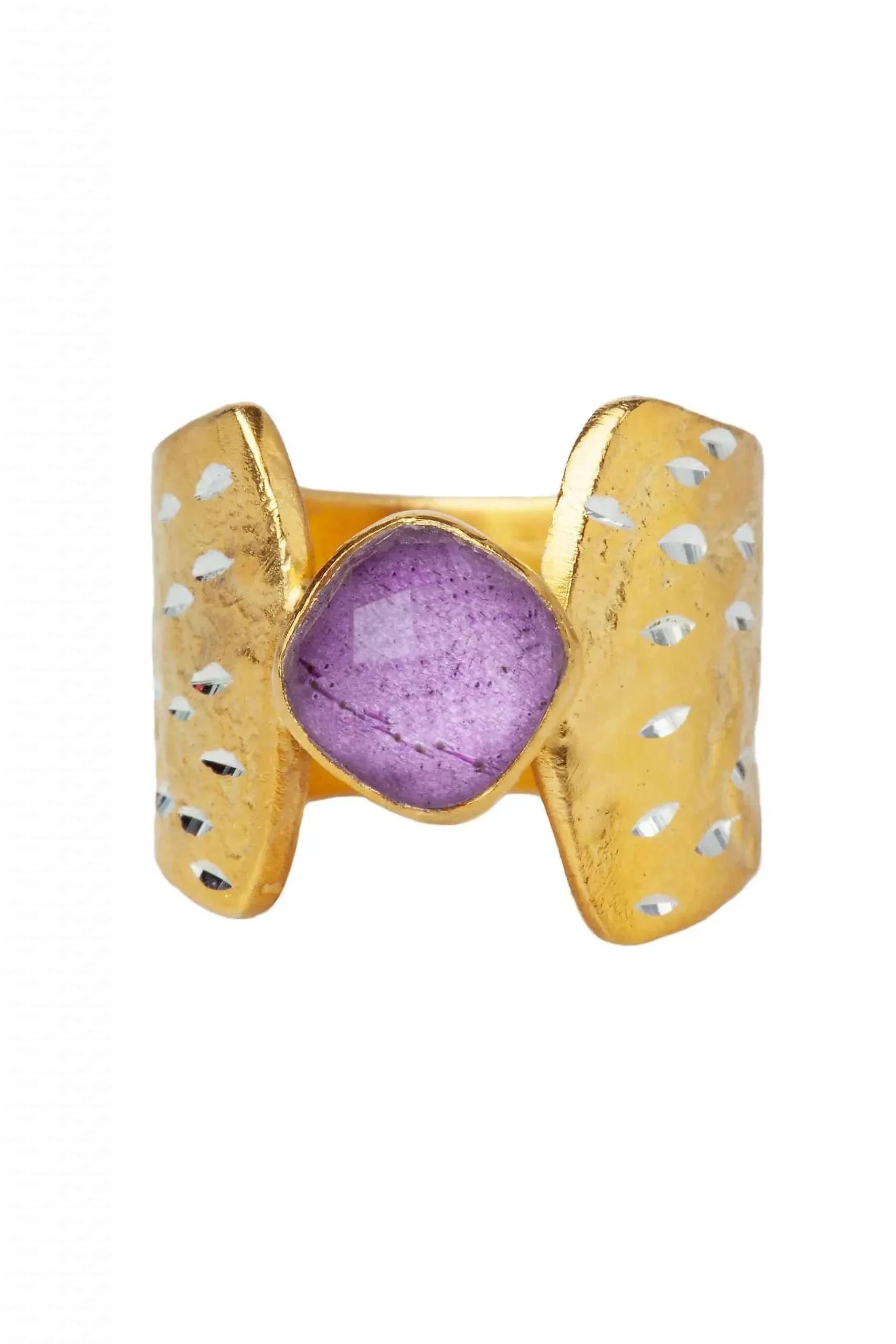 Ruby gold-plated textured silver 925 ring with diamond dust. This beautiful gold-plated silver ring combined with ruby is a perfect choice for your jewellery collection. Add unique style to your look.