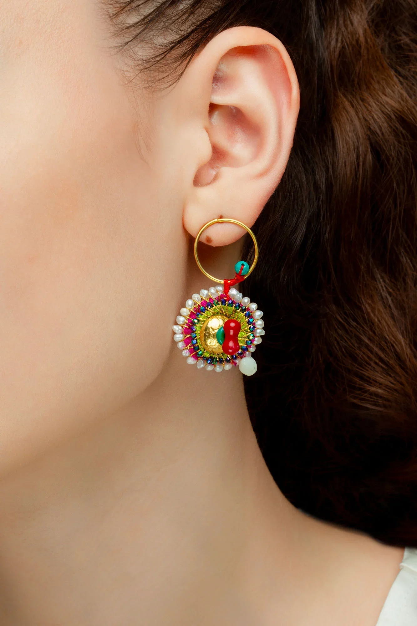 Silver handmade earrings with variety of precious elements