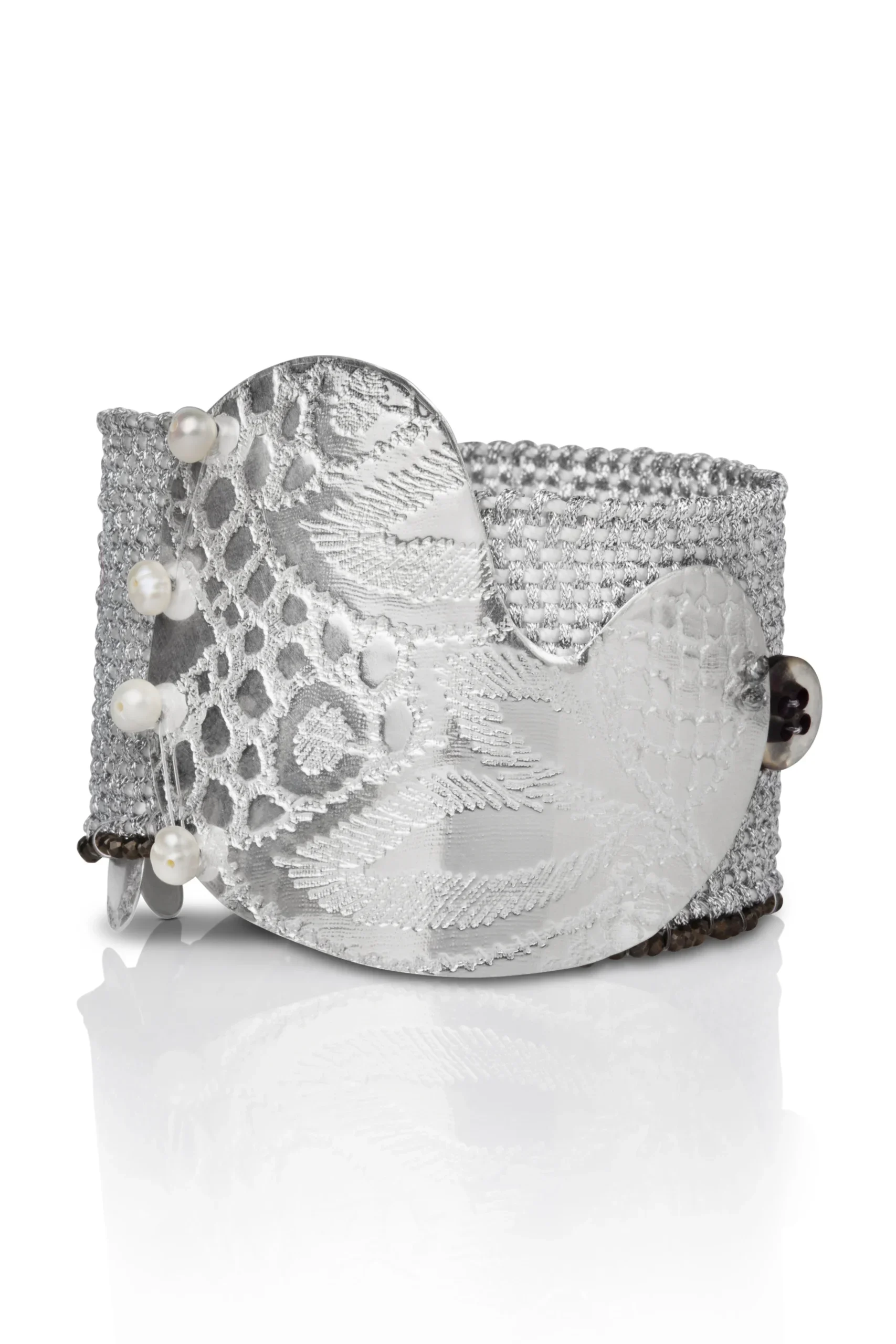 Add a touch of sophistication and natural beauty to your jewellery collection with our handmade textured silver and woven bracelet. Crafted with care and attention to detail, this one-of-a-kind piece features a striking combination of silver and woven elements, creating a unique texture that catches the light and draws the eye. Adorned with shimmering pyrite stones, this bracelet adds a touch of sparkle and elegance to any outfit. Elevate your style and make a statement with this stunning bracelet. Perfect as a gift for yourself or a loved one. Order now and experience the beauty and elegance of this handmade treasure.