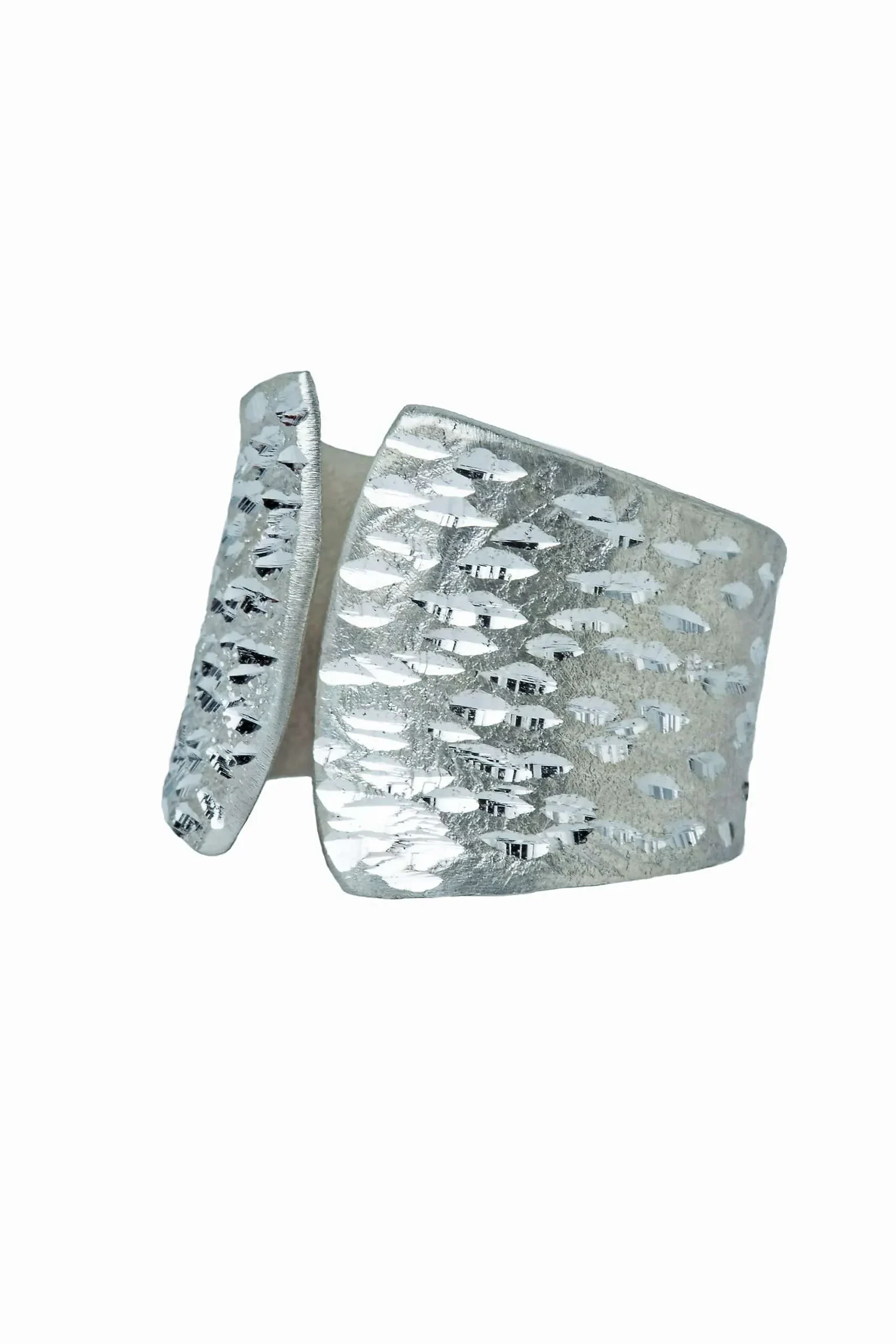 Elevate your jewellery collection with the “Silver Glacier” ring, a bold and avant-garde piece designed to capture the light. Hand-forged from premium 925 sterling silver, this wideband ring features a unique “crinkled” texture with brilliant diamond-cut accents that mimic the glistening surface of ice.