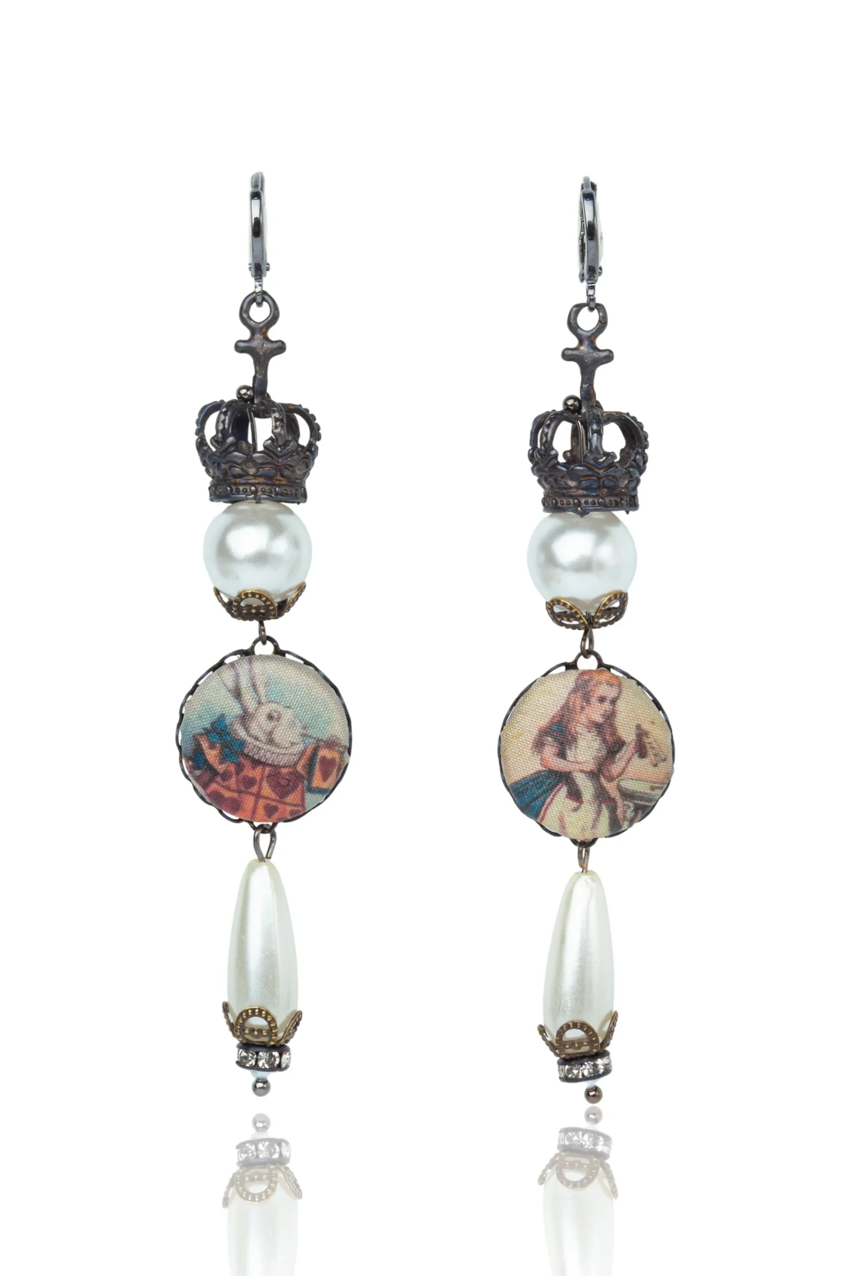 The Queen’s Royal Dangles: Wonderland Character Pearl Earrings