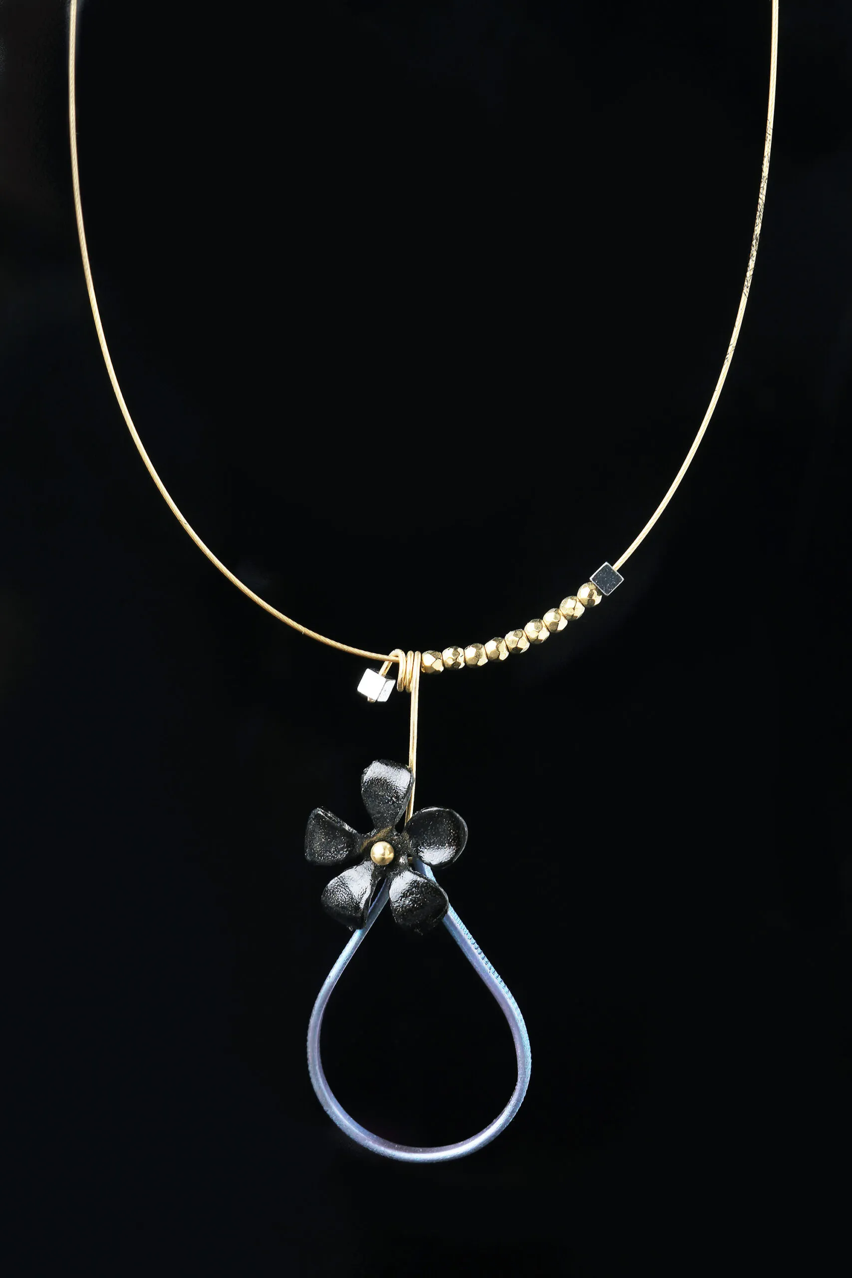 Titanium and gold plated silver 925 pendant, on a steel wire