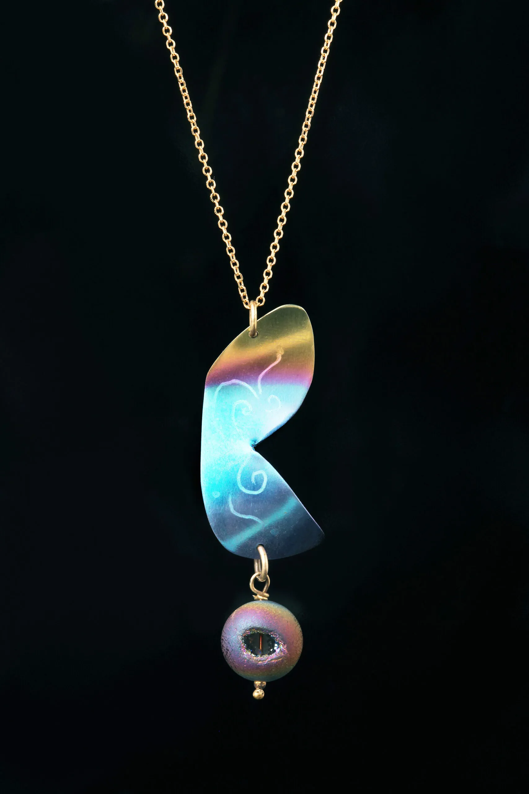 Butterfly titanium and silver pendant with pyrite