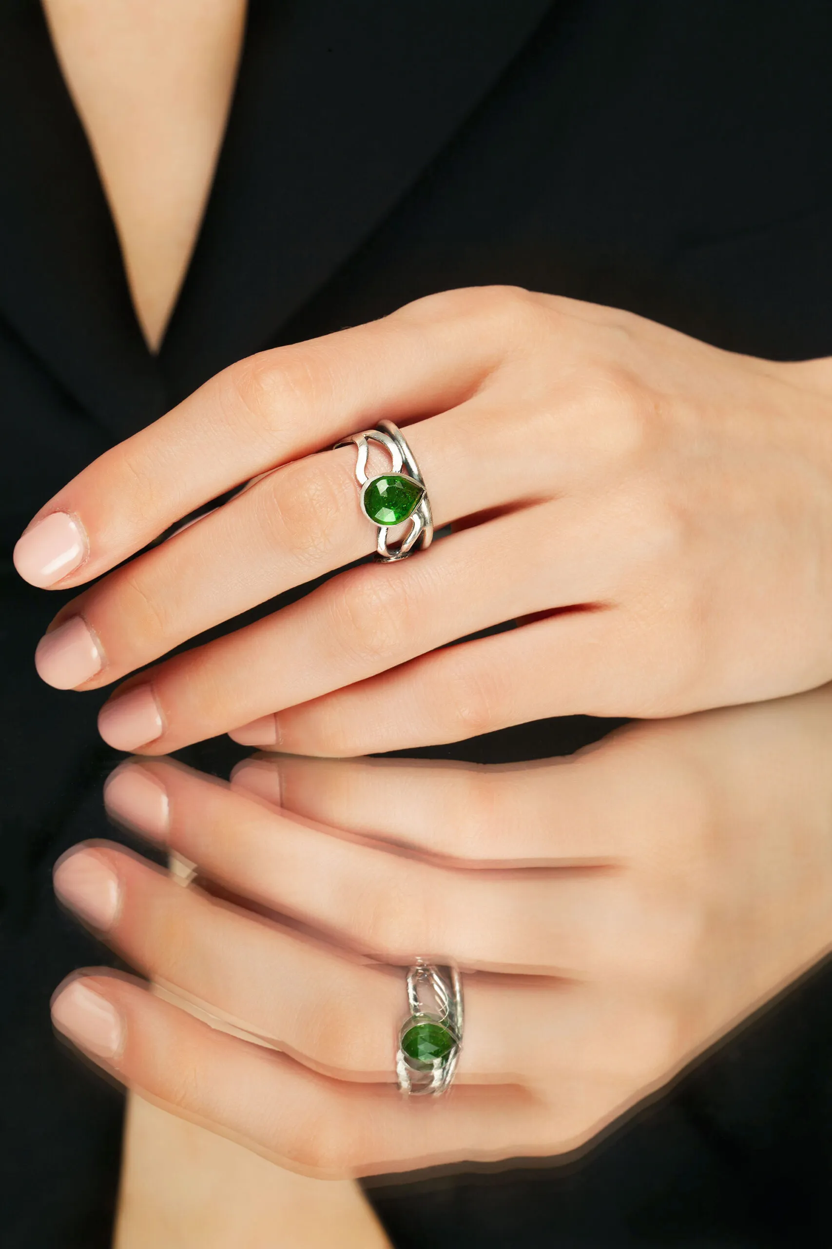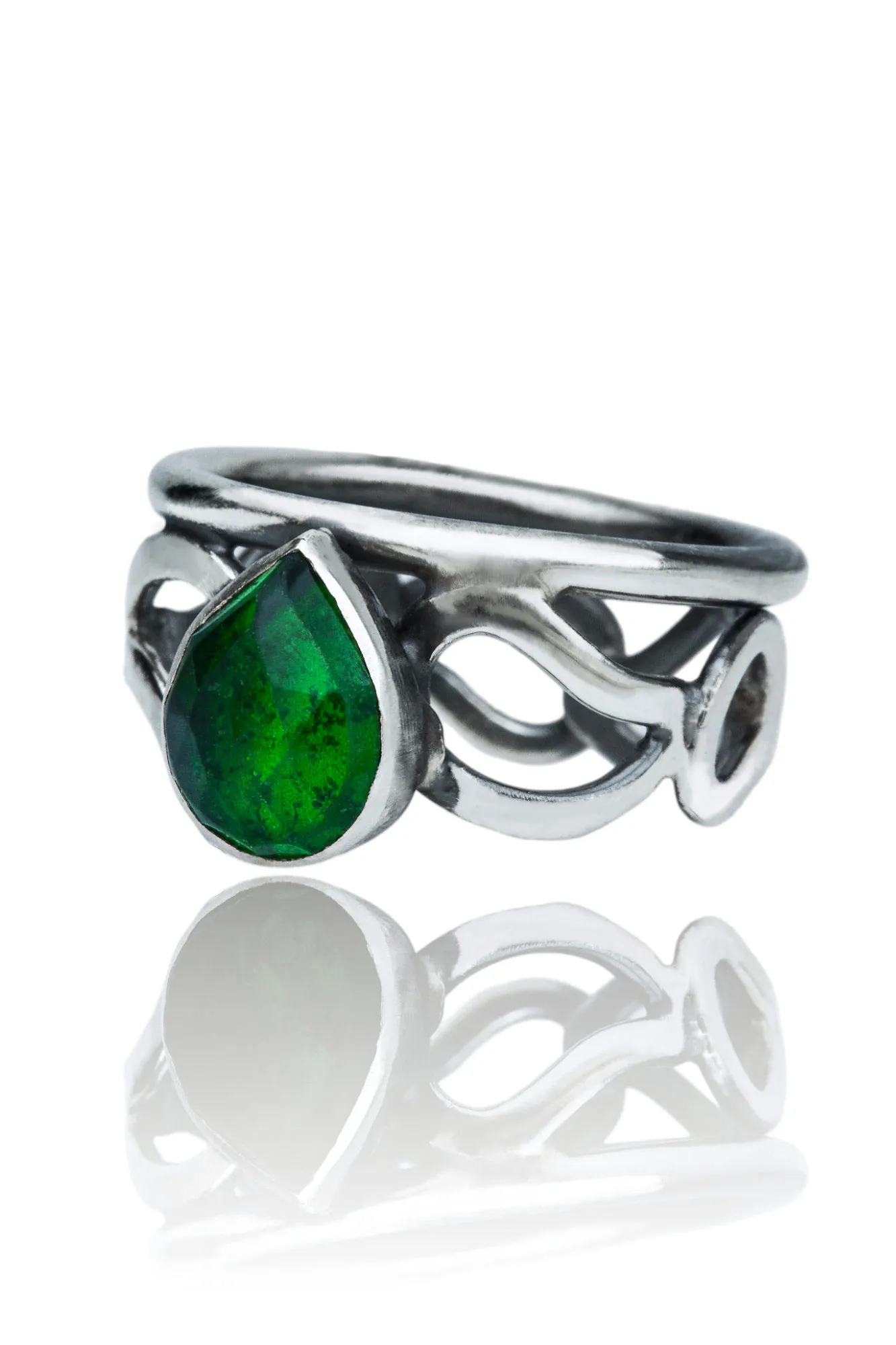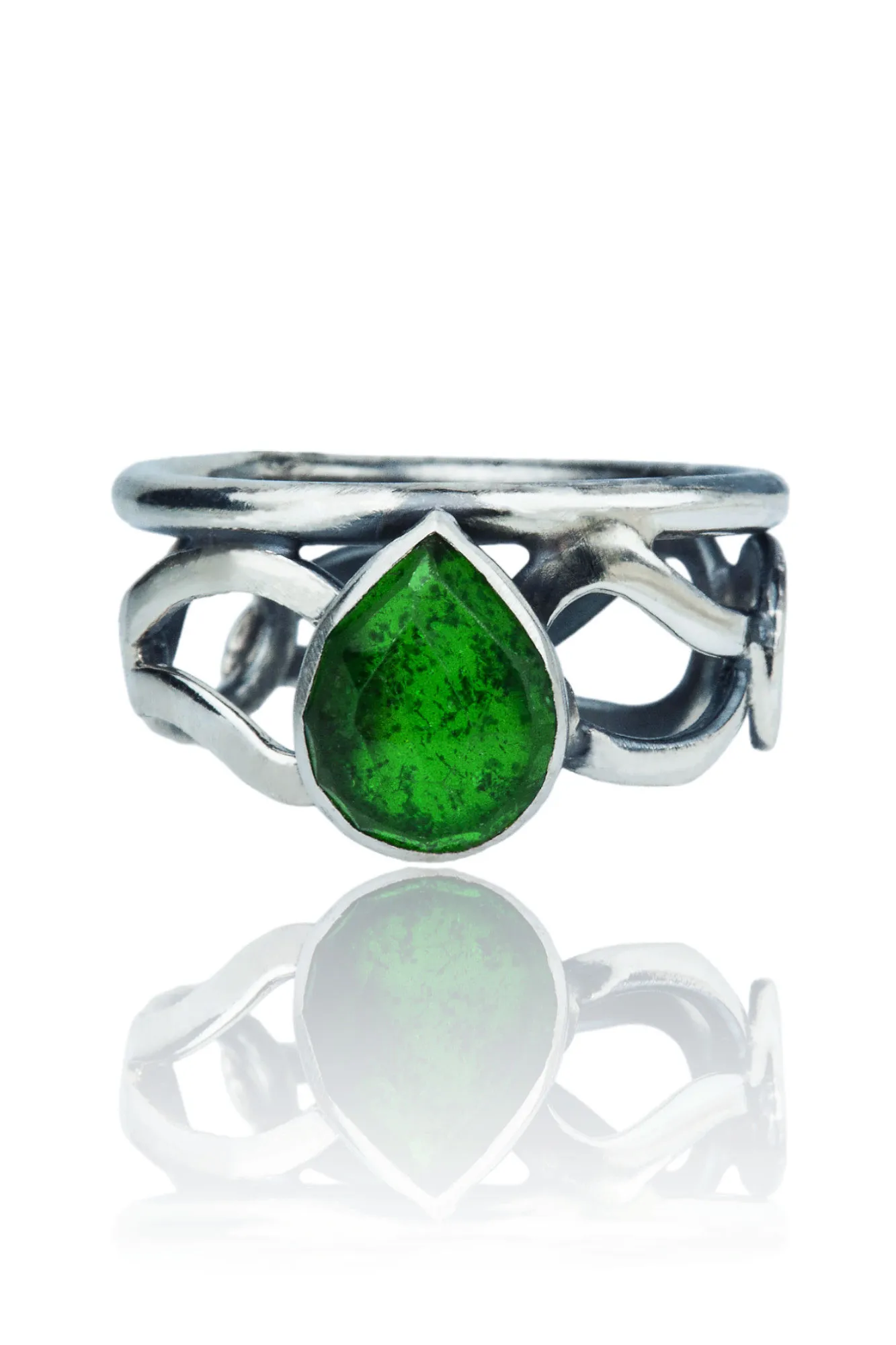 Introducing our stunning Tourmaline Green Paisley Oxidized Silver Ring! Crafted with precision and care, this ring features a mesmerizing green paisley pattern made from natural tourmaline gemstones. The oxidized silver adds depth and character to the design, making it a true statement piece. Perfect for adding a touch of elegance and sophistication to any outfit. Shop now and embrace the beauty of nature with this one-of-a-kind ring.