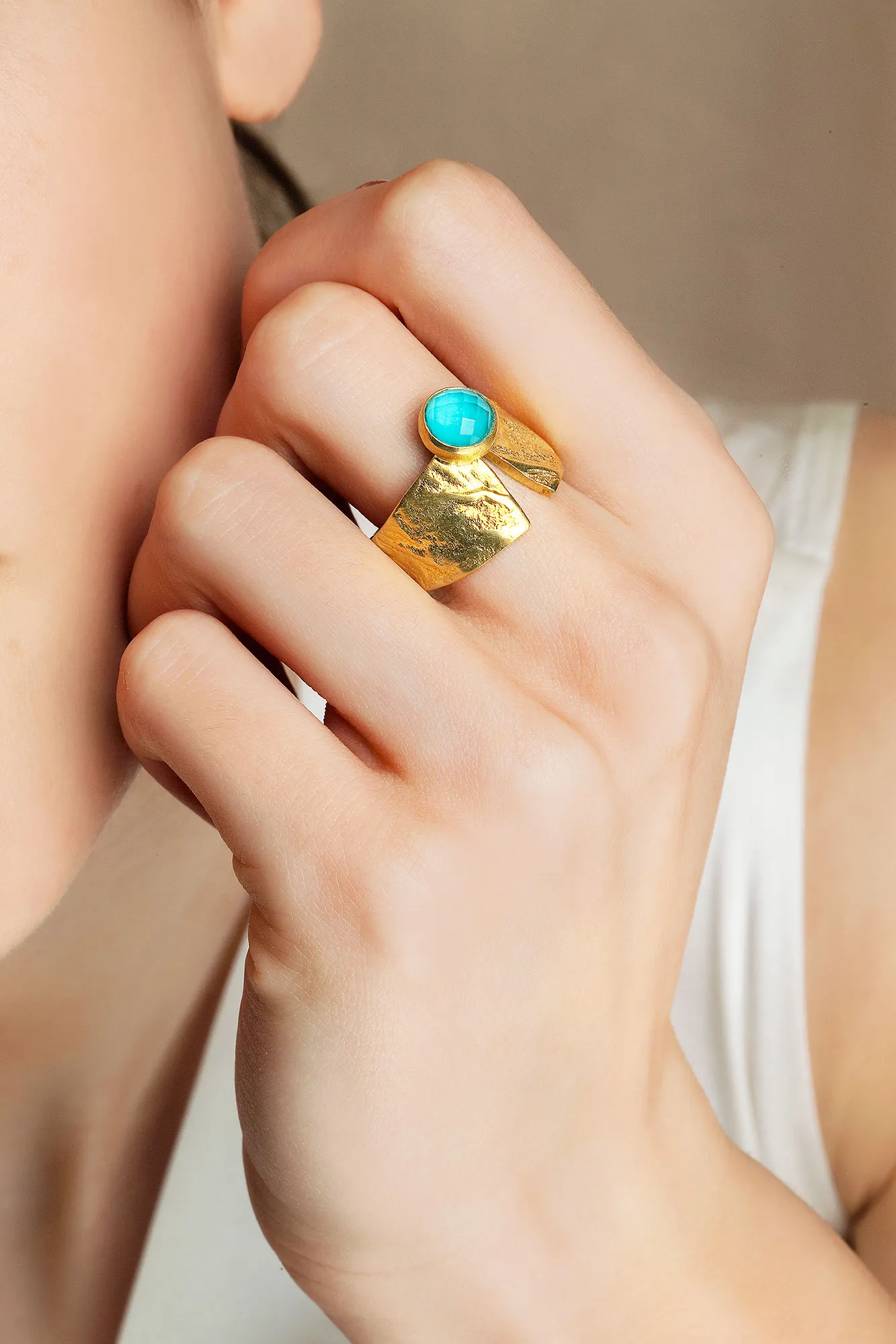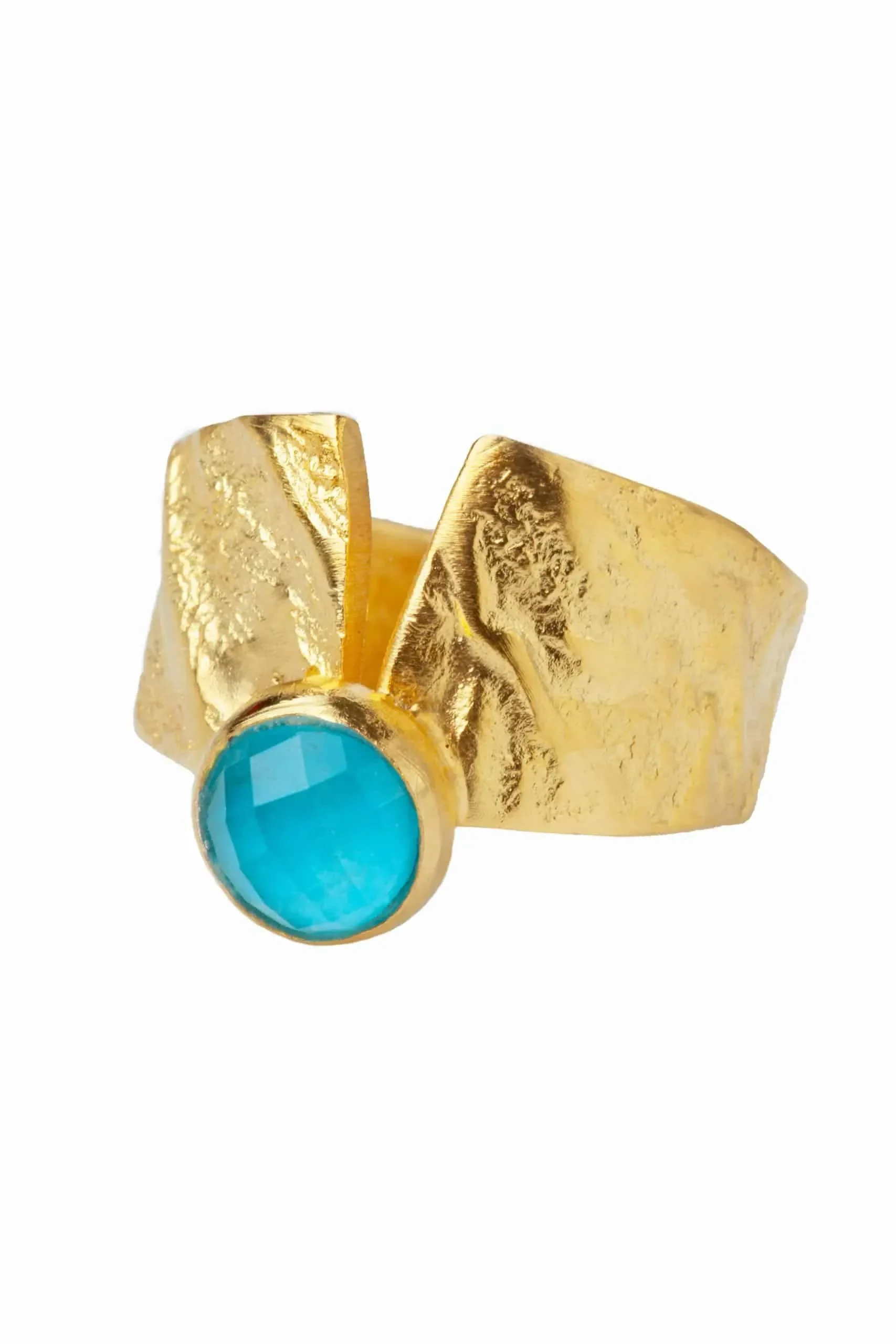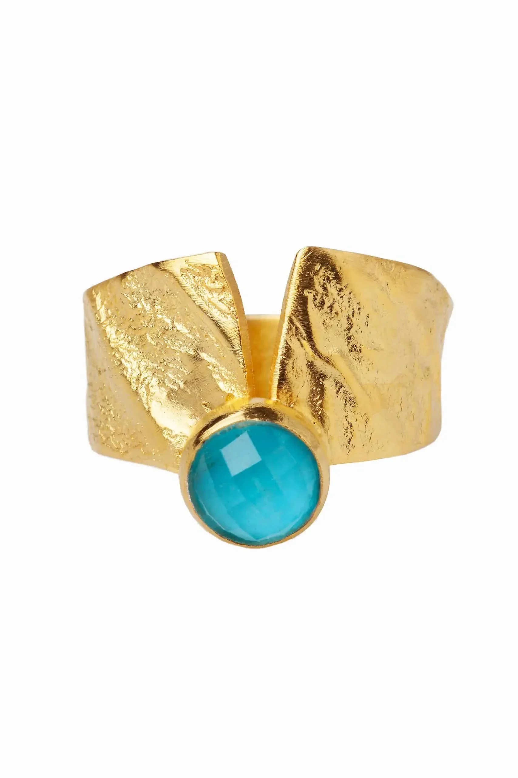 Turquoise gold plated textured silver ring
