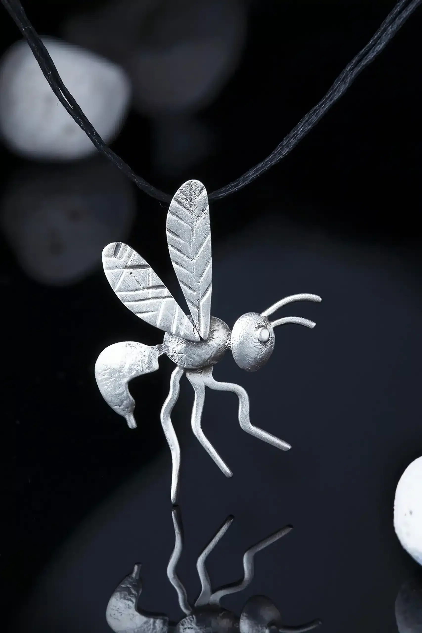 Wasp oxidized silver necklace