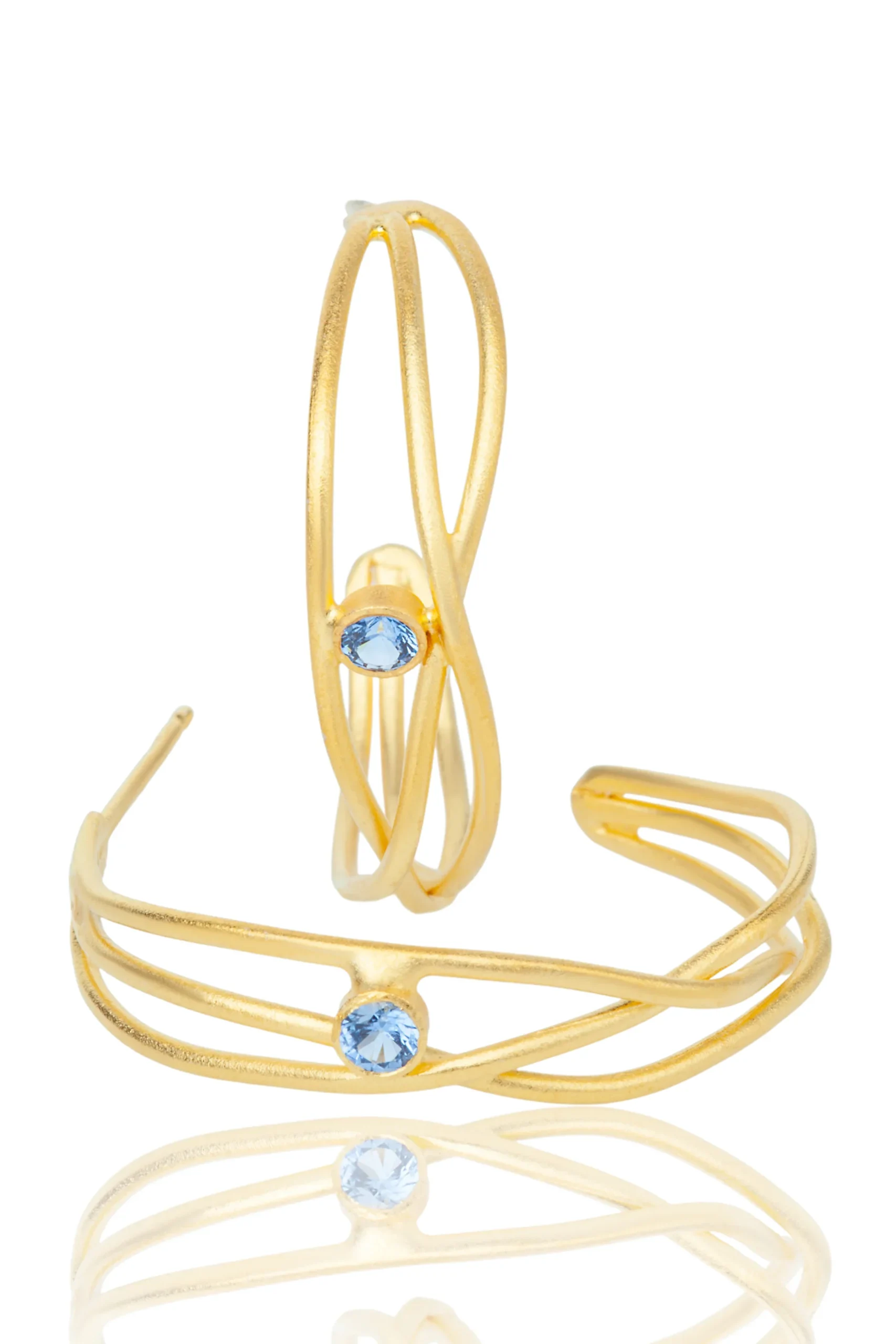 Introducing our stunning Waves handmade gold-plated silver hoops with blue zircon, the perfect blend of elegance and style. Each hoop is carefully crafted with intricate wave designs, adding a touch of sophistication to any outfit. The hoops are plated with high-quality gold and adorned with shimmering blue zircon stones, creating a mesmerizing contrast that catches the eye. These hoops are lightweight and comfortable, making them perfect for everyday wear. Elevate your jewellery collection with these unique and versatile hoops, perfect for any occasion. Shop now and make a statement with our Waves hoops.