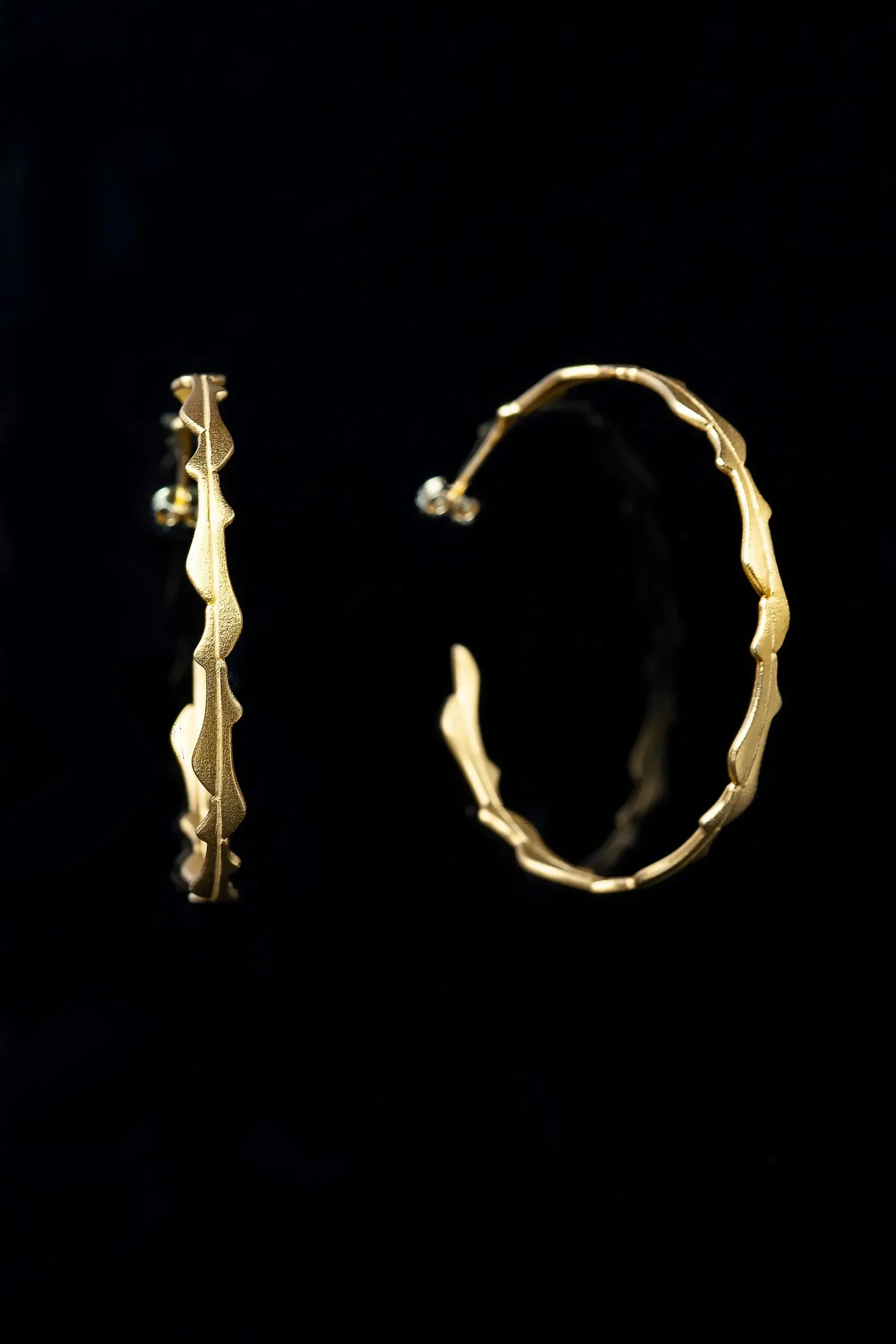 Wavy gold-plated silver hoops