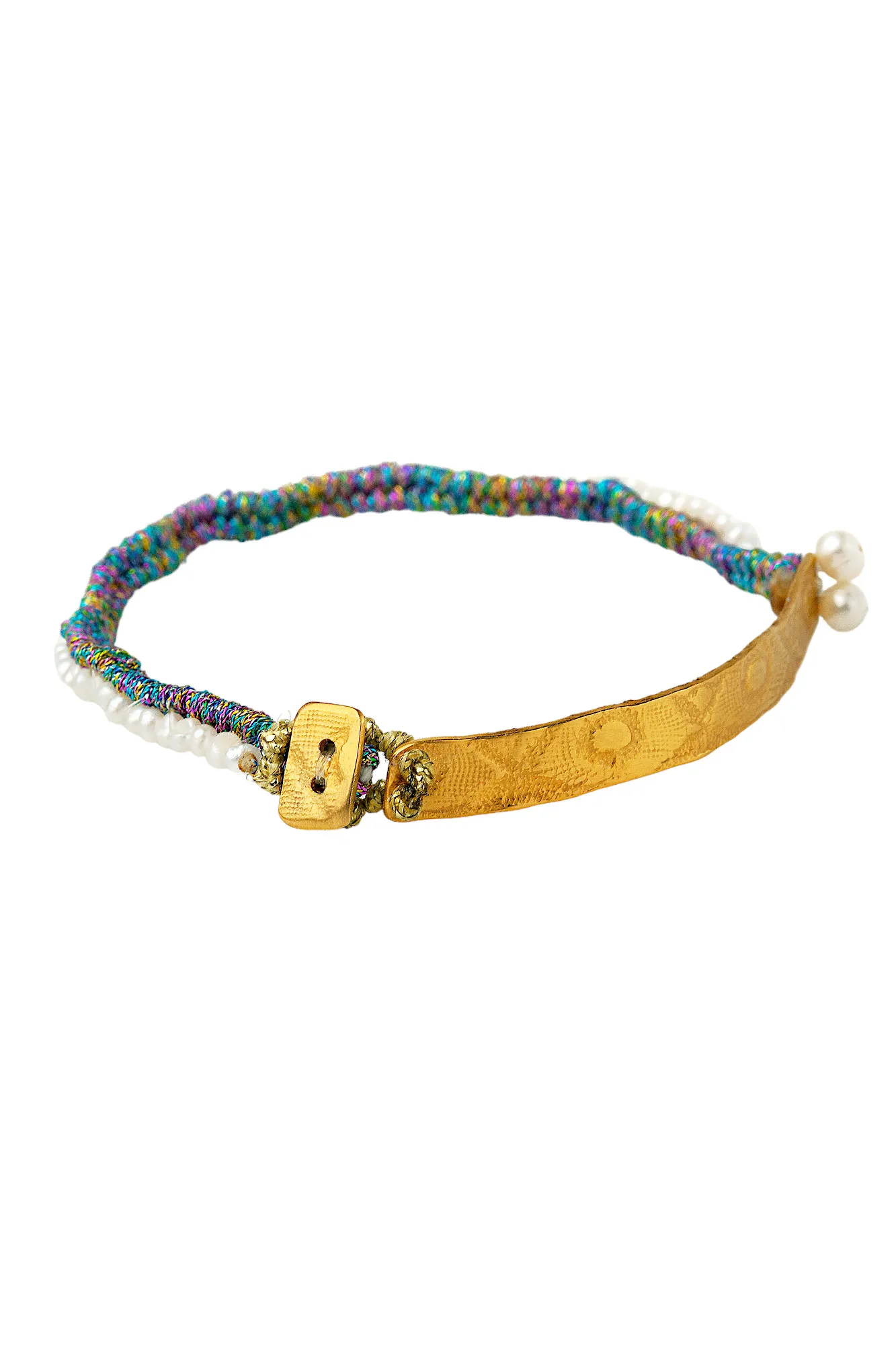 Introducing our stunning Woven Multicoloured Bracelet with Silver and Pearls! Handcrafted with care, this bracelet features a vibrant array of colourful threads intricately woven to create a unique and eye-catching design. Adorned with shimmering silver accents and lustrous pearls, this bracelet is the epitome of elegance and sophistication. Whether you’re heading to a formal event or looking for a pop of colour in your everyday outfit, this bracelet is the perfect choice. Upgrade your accessory game and add this exquisite bracelet to your collection. Shop now and make a statement with our Woven Multicoloured Bracelet with Silver and Pearls.