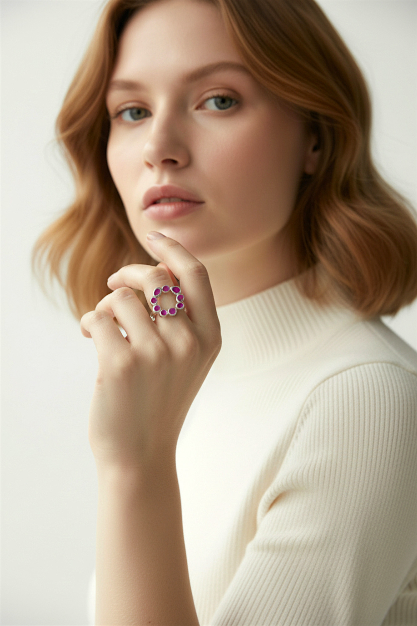 Introducing the stunning Wreath handmade silver ring with lilac enamel. Crafted with intricate details, this ring is a true work of art. The delicate lilac enamel adds a touch of elegance to the sleek silver band, making it a perfect accessory for any occasion. This ring is handcrafted with care, ensuring each piece is unique. With its timeless design and durable materials, this ring is sure to become a treasured addition to your jewellery collection. Perfect for gifting or treating yourself, this Wreath ring is a must-have for any fashion-forward individual. Shop now and add a touch of glamour to your style!